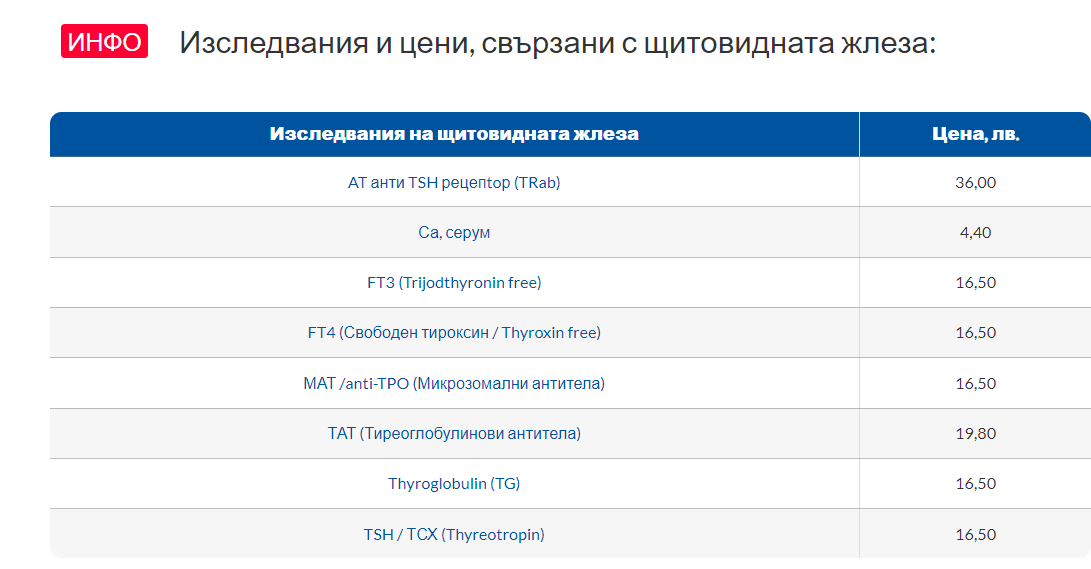 Може ли да ме насочите кои изследвания трябва да направя за щитовидната жлеза от показаните: