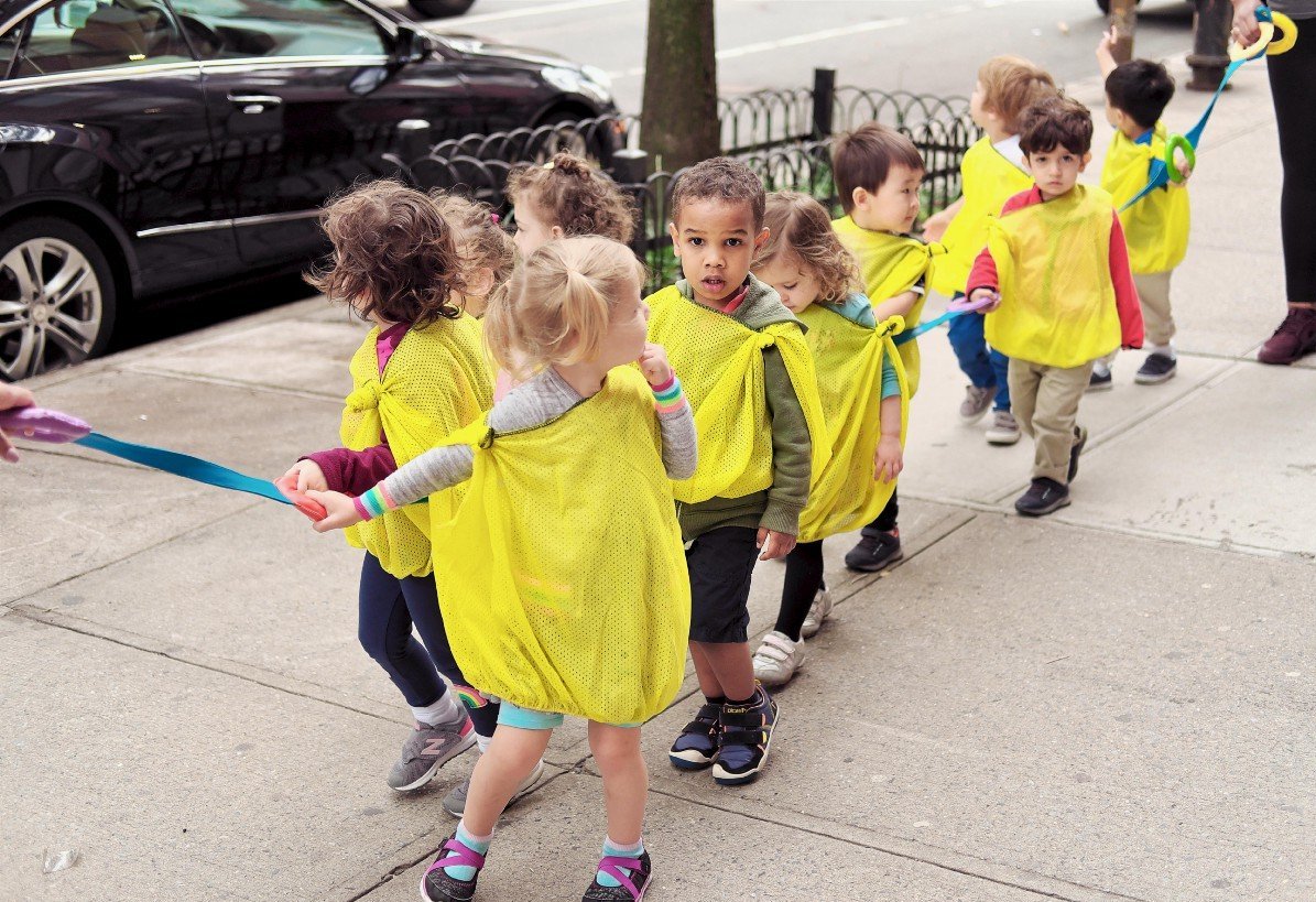 Сега в Щатите им дават едно въженце. И всички деца се държат за въженцето и учителката ги води. Много са сладки. Поне моя син така беше. Освен ако не са променили нещо.