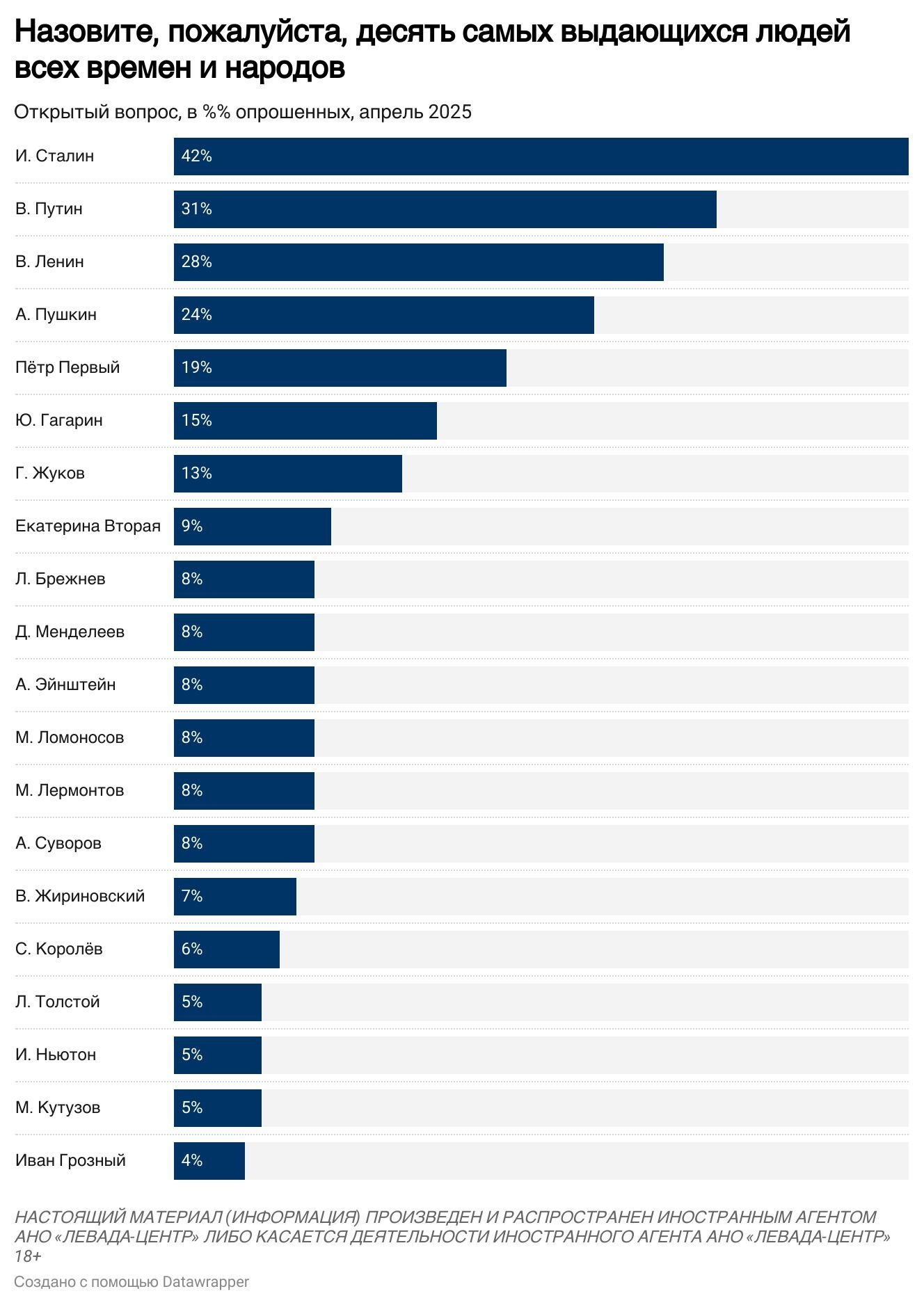 Сталин е сатрап, който няма как да бъде сред най-великите личности в историята. Тази класация говори за сериозни дефицити и деформации в руското общество. Особено със следващите "велики" личности на второ и трето място.