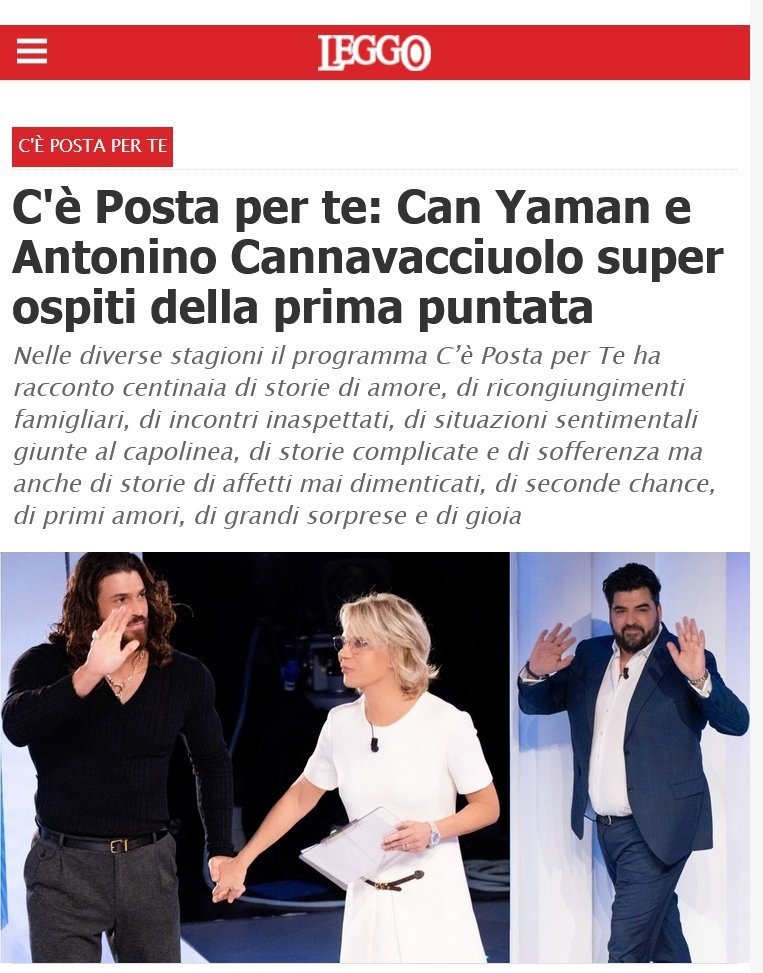 В първия епизод от сериала C'è posta per te  Джан Яман ще се завърне в двора на Мария де Филипи. Турският актьор е обичан от зрителите на Channel 5 и феновете му нямат търпение да го видят отново в съботното студио на Mediaset. Антонино Канавачиуоло също ще бъде вторият гост в епизода на 7 януари на C'è posta per te. Неаполитанският готвач ще бъде едно от главните действащи лица в първия епизод на програмата на Канал 5 тази година.