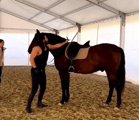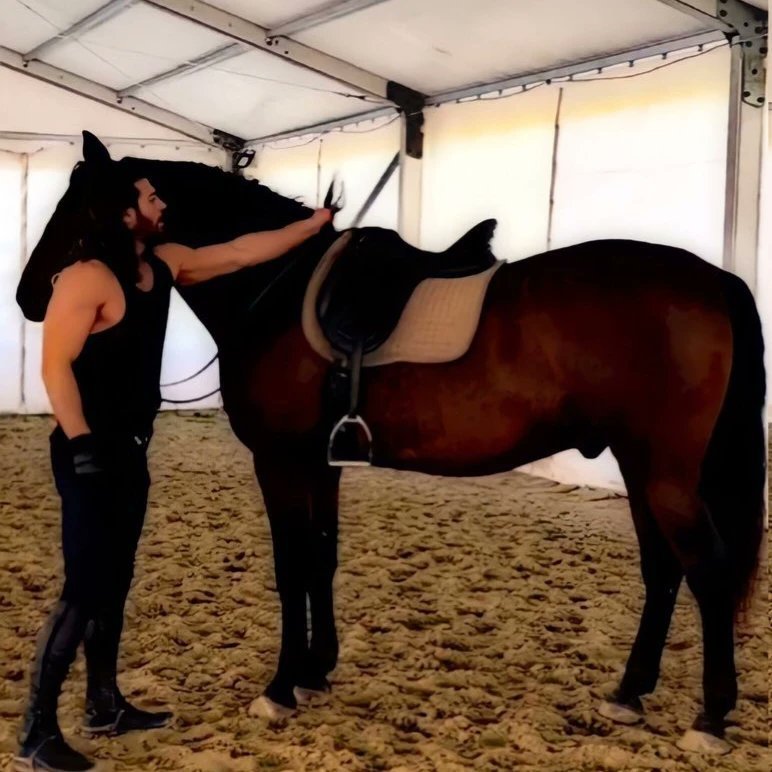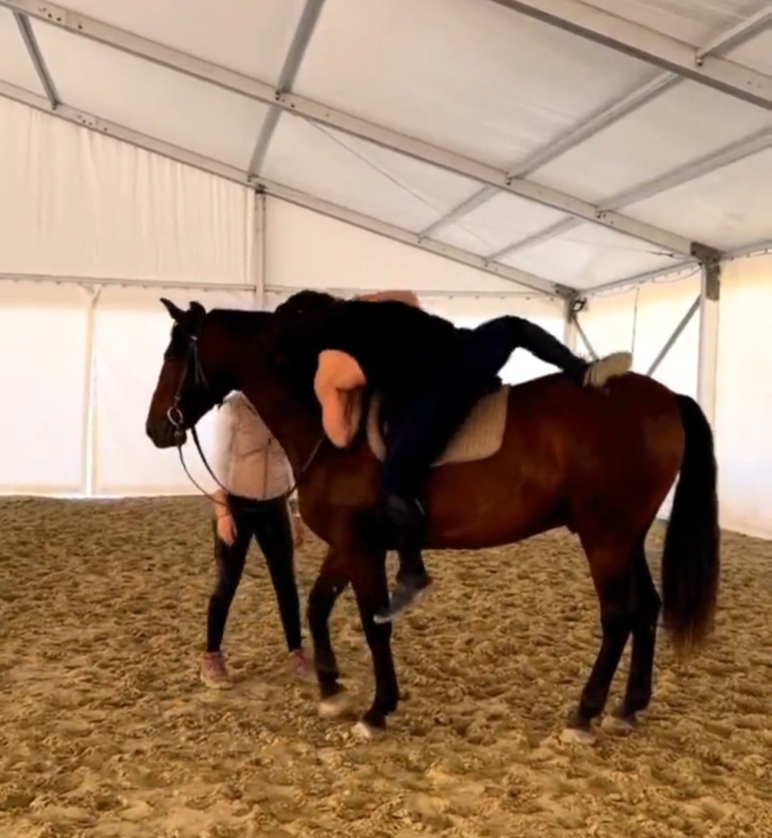 преди 2 години започна с тренировките  да се  учи да се качва на кон