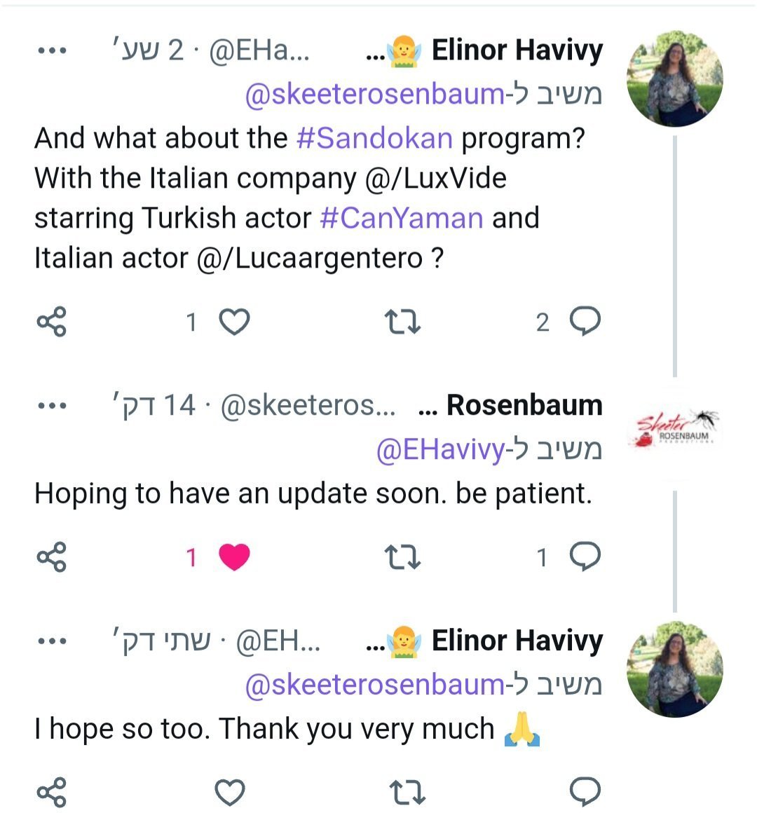 Днес изпратих съобщение до продуцента и сценариста на сериала Sandokan, продуциран @/ skeeterosenbaum и от италианската компания @/ LuxVide.