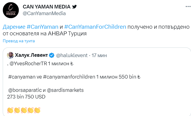 Тази събрана сума ще бъде дарена на сдружение "Ahbap" в Турция в подкрепа на пострадалите от земетресението, както сме съобщили и преди.