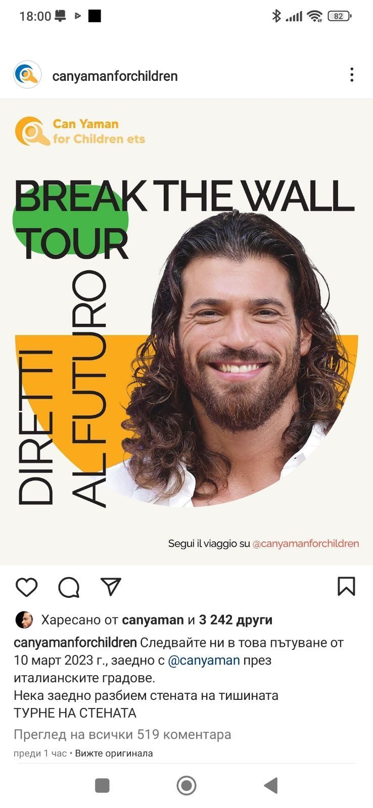 Това е истинското и конкретно послание, което Can Yaman иска да донесе с ТУРНЕТО BREAK THE WALL. -