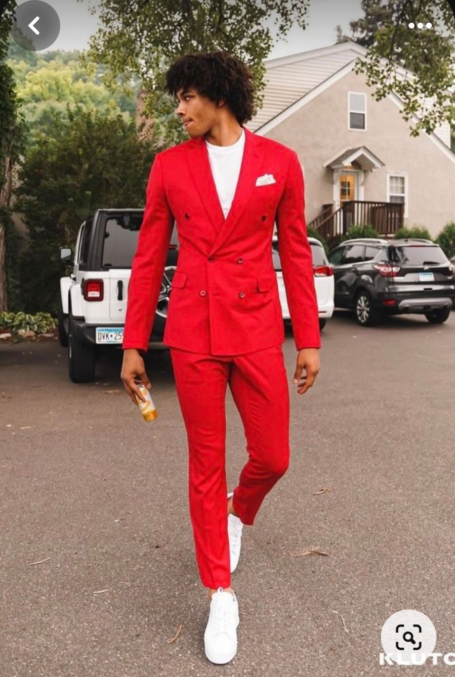 И моя синковец ще е така - класически костюм с бели  кожени кецки. Сега гледам, че двуредното закопчаване е на мода, но тези сака стоят добре само закопчани.