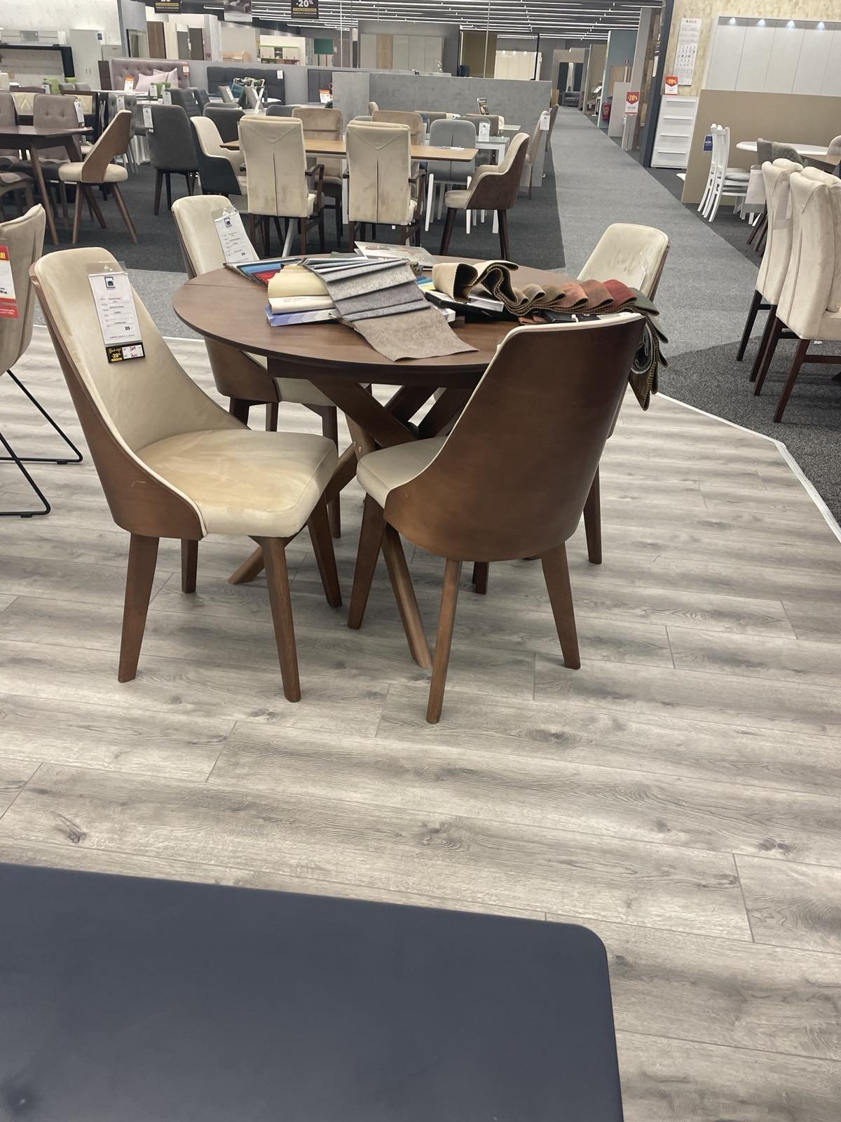Той иска кръглата маса със столоветв от втората снимка,но аз съм отворена на всякакви предложения .Не мога да измисля какви -стул и цветове .Искам да имам варианти,за да му предложа.