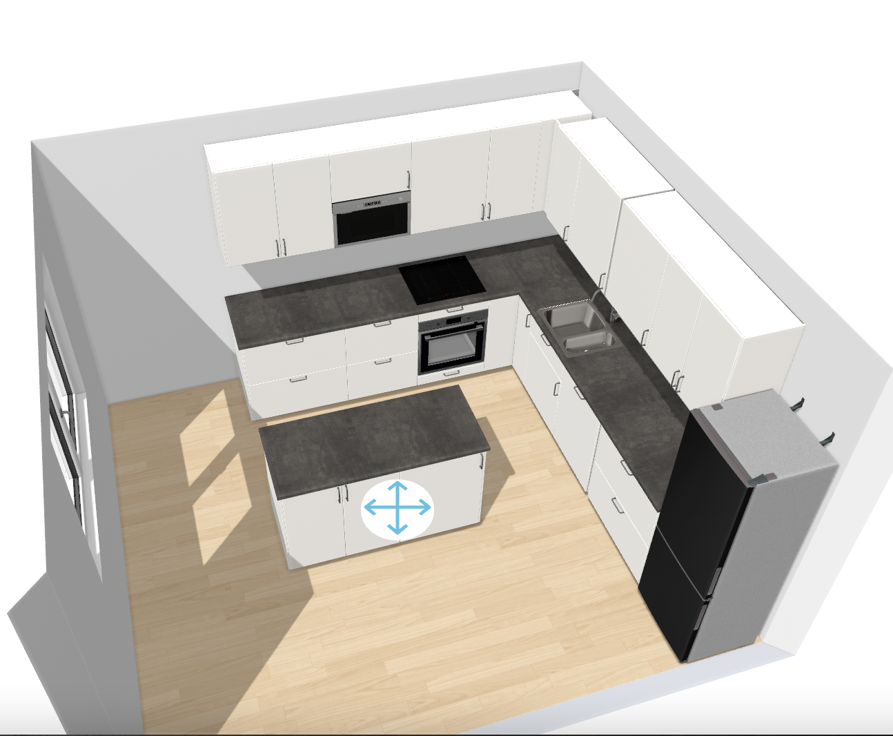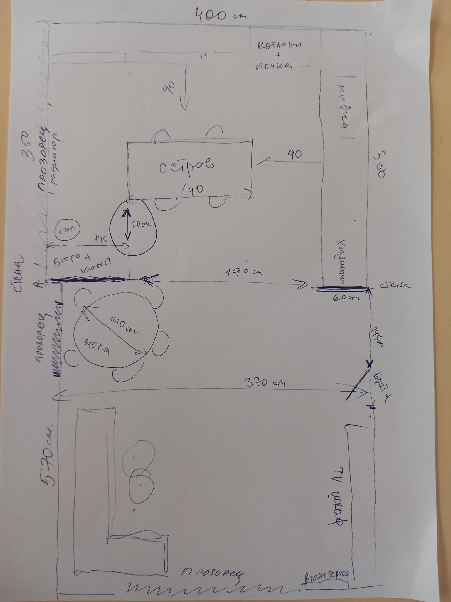 Как мога ефективно да разпределя 666 см пространство между диван, кухня, маса и столове?