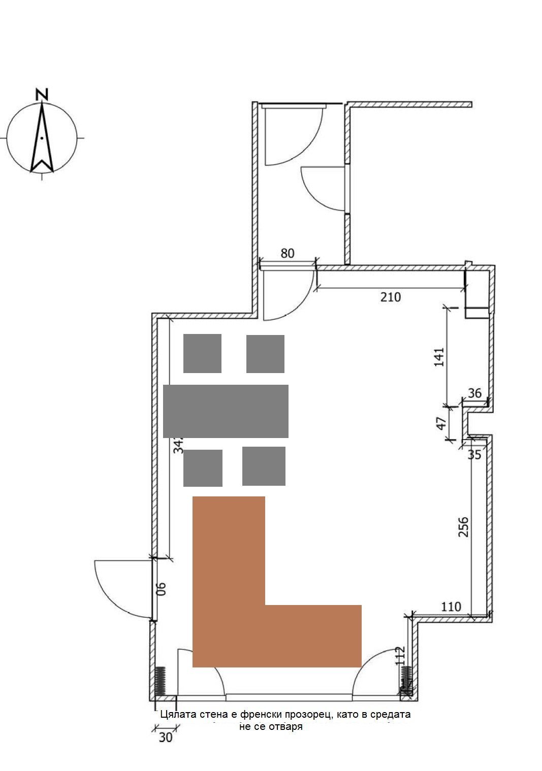 Моля за помощ, всички сме с различни мнения и изобщо не стигаме до никъде. Как бихте разположили всичко в тази холо-кухня? Най-много се разминаваме за тази стена с френски прозорец. Гледката е прекрасна и искаме да и се наслаждаваме максимално.