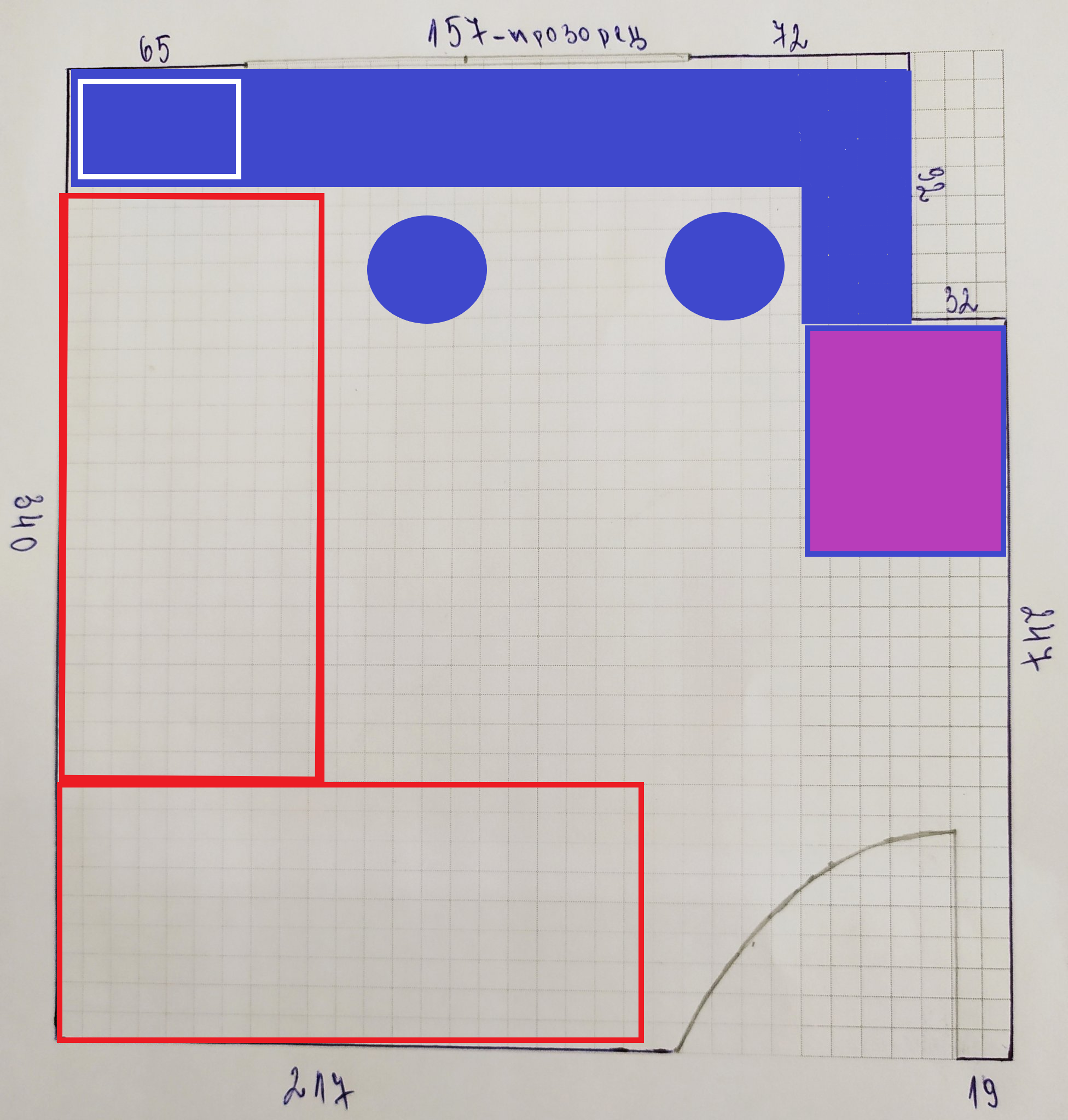 Как мога ефективно да разпределя 666 см пространство между диван, кухня, маса и столове?