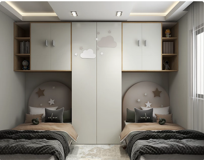 При варианта с двуетажните легла се печели повече място за съхранение, а същевременно с това съществува усещането за повече ефирност и въздух. Големият минус е обслужването на леглото на втория етаж.