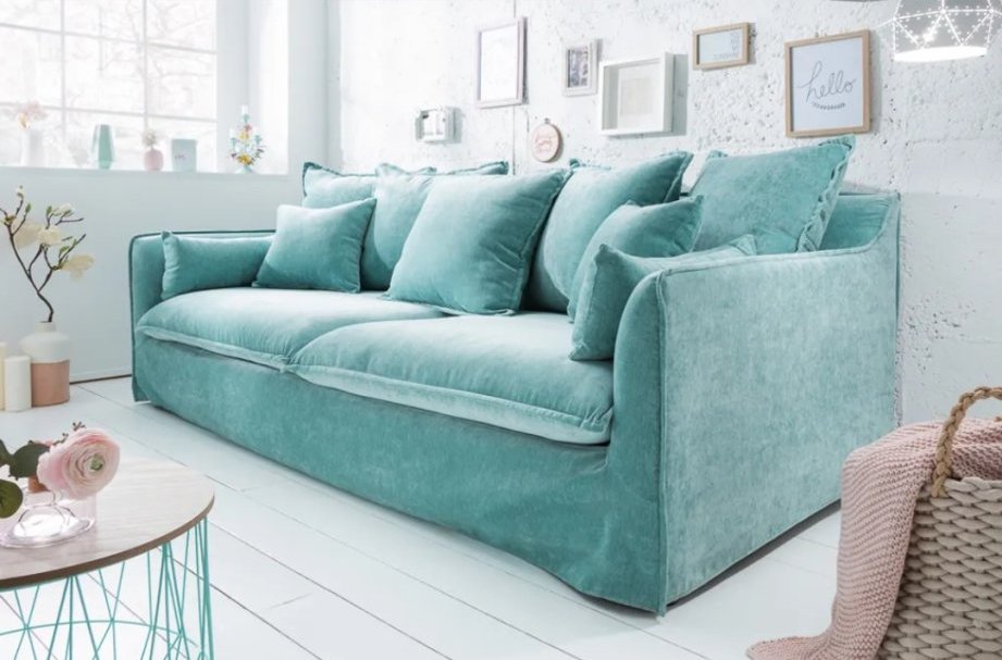 Но тези дни си харесах бонбонест тюркоазен диван и се чудя дали няма да е добър старт като eye catcher.