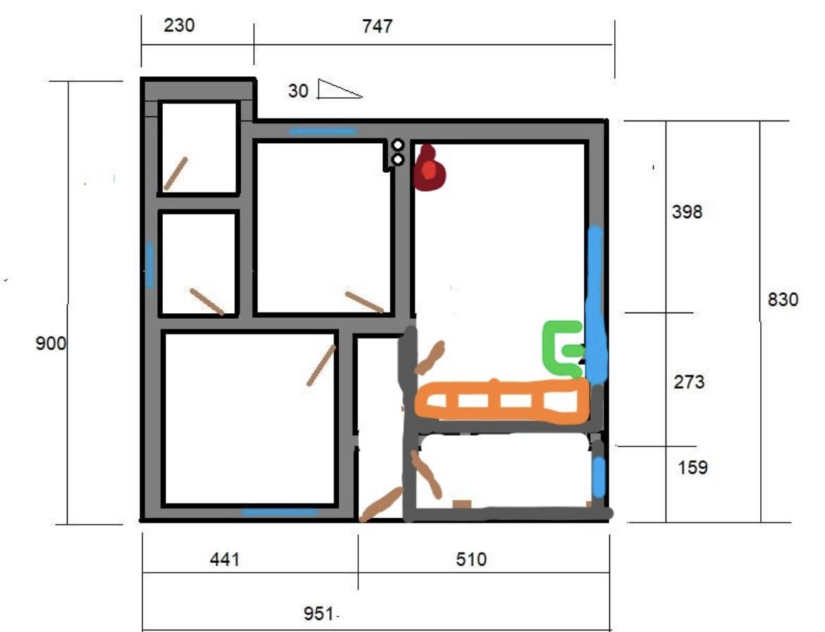 Плота е технически камък, не е от Айко. Зад съдомиялнята се падат изводите за водата и това изяжда част от мястото. Моята идея също беше долният шкаф до уредите да е бял, за да не дразни толкова много, но се съгласих със специалиста. Сложихме дивана там, а не под прозореца с идеята да се наслаждававе на гледката. Това решение вече ме дразни, но в момента нямам възможност да го поправя. Вратите са заварено положение, както и дограмата. Наложи се даже да ги изрежем отдолу, след като сложихме ламината.При първа възможност искам да ги сменя.
