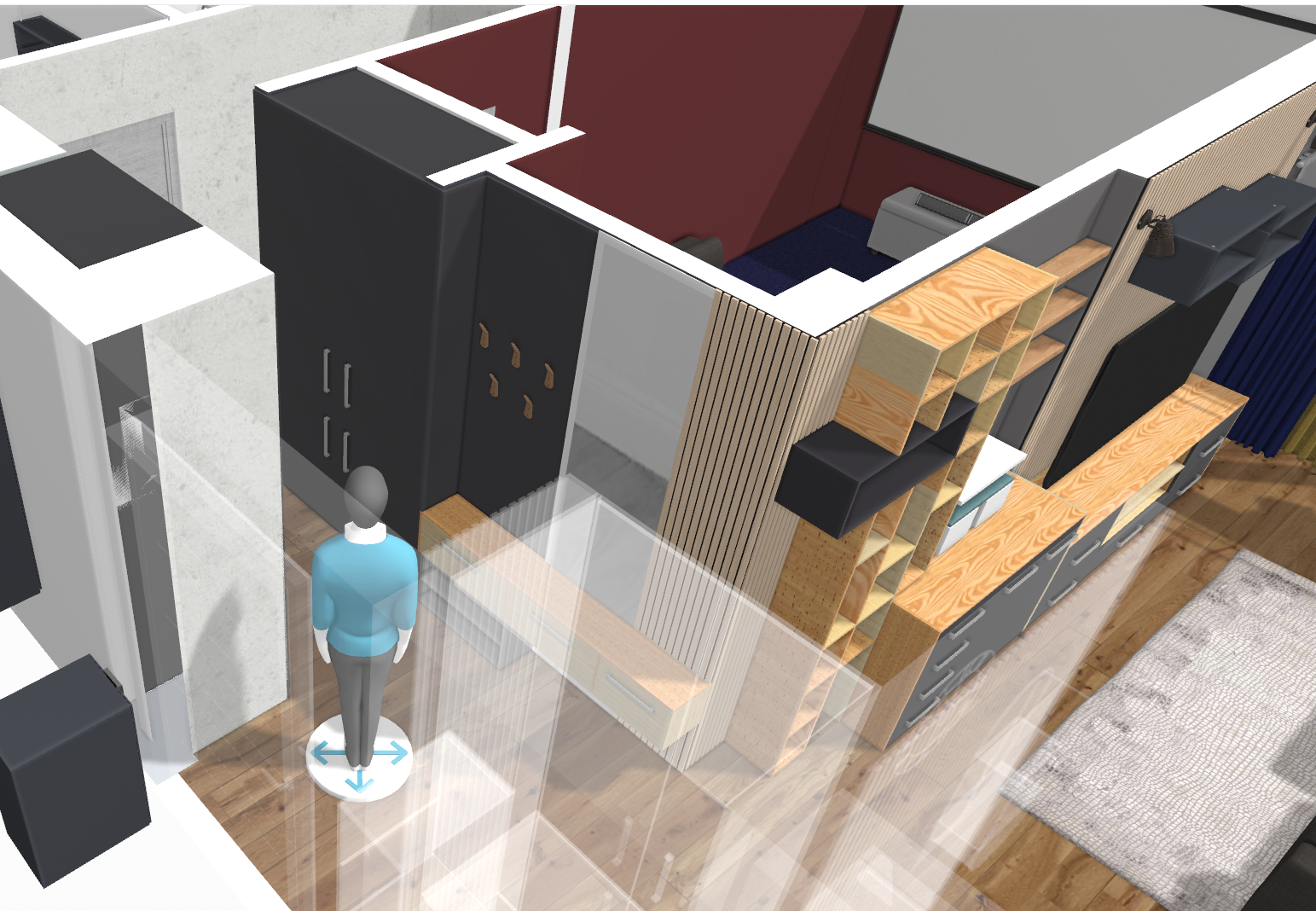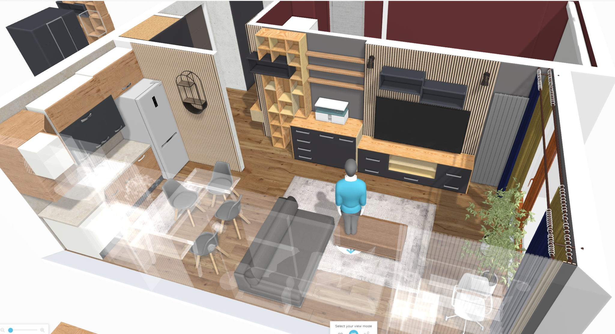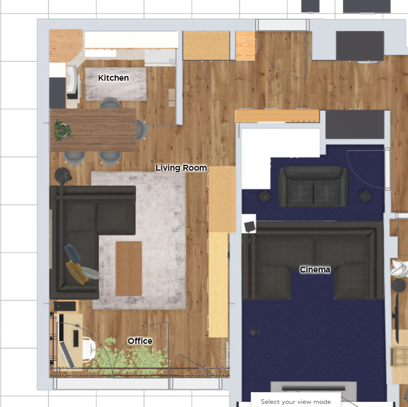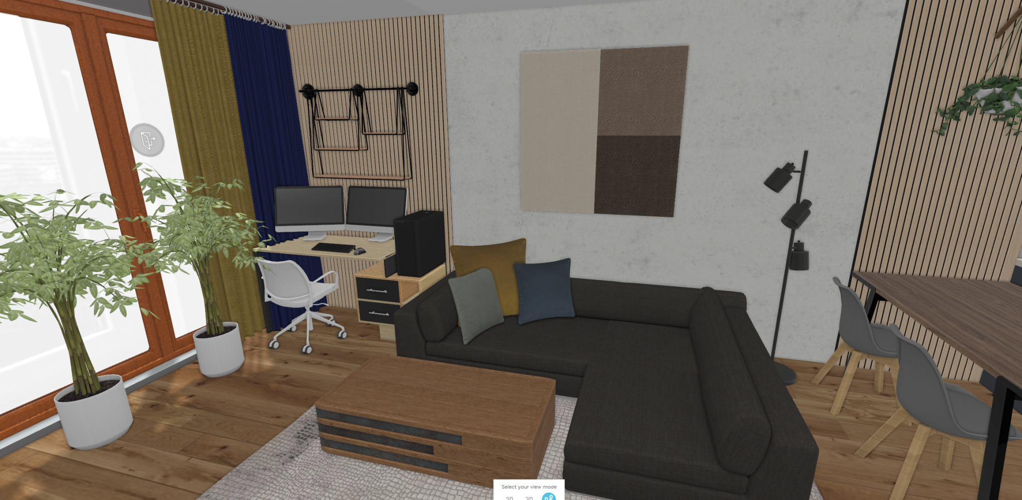 Здравейте! Захванал съм се да си направя цялостно обзавеждане в антрето и дневната, като смятам да запазя пода, тавана и кухнята, съответно те диктуват стила и цветовете. Напаравил съм си проект и съм почти доволен от резултата, но нещо ми липсва.