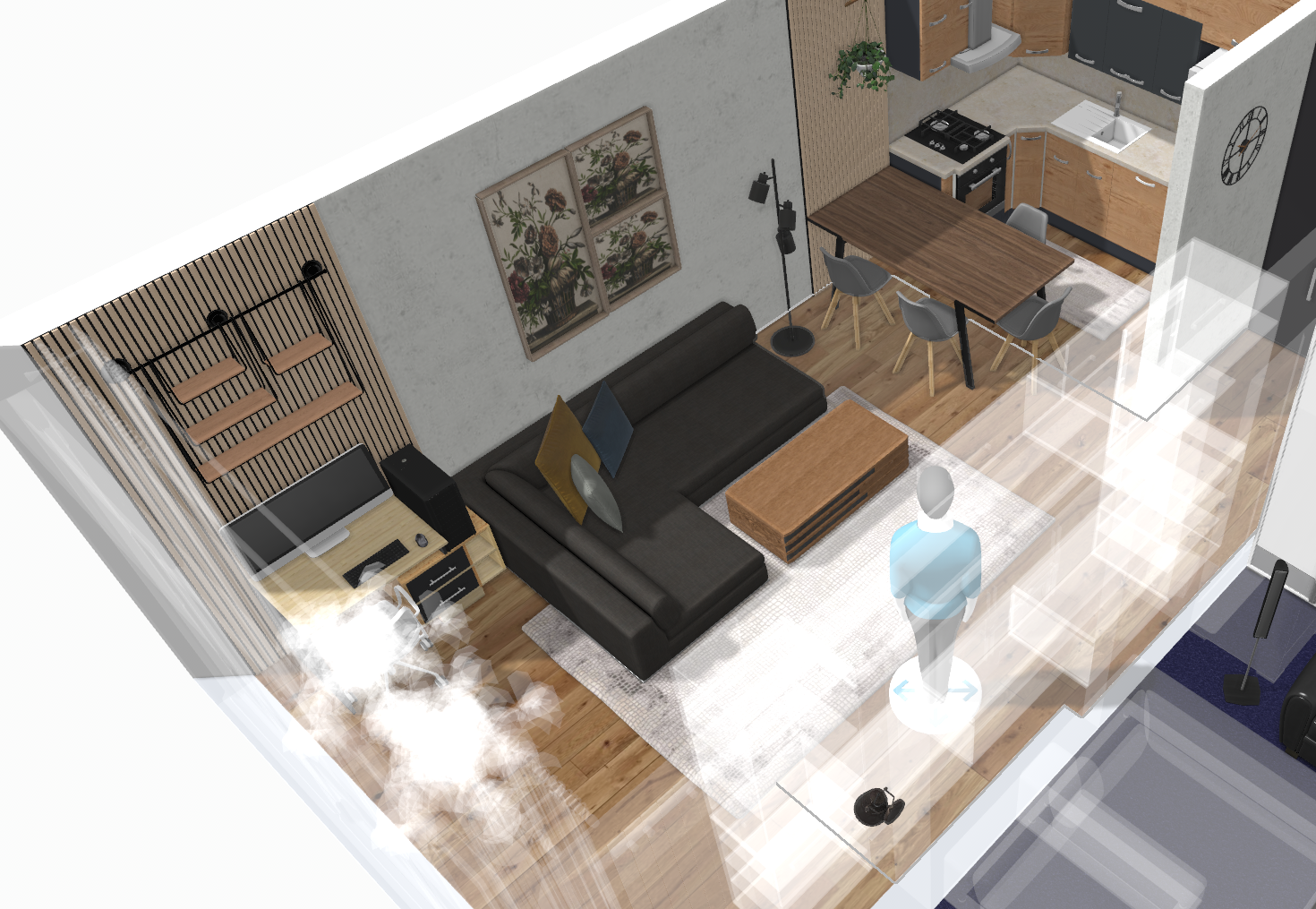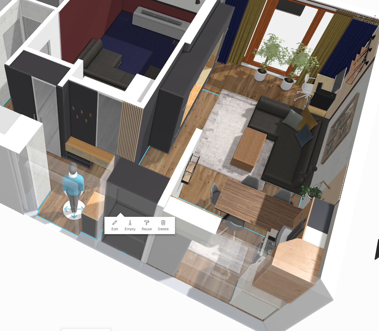 Относно "олекотяването" и премахването на мебелировката, това не за всекиго е възможно. Помещението е малко, ако не бъркам питащият спомена и че място за съхранение му е необходимо и напълно го разбирам.