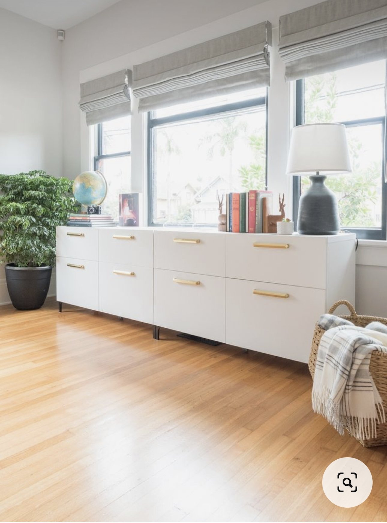 За чекмеджетата - има си техническа възможност да се направят скрити такива и в шкафовете с в вратички, и в този с големите чекмеджета, трябва да се говори с мебелист. Може да се сложи и някой скрин с чекмеджета до дивана, ако са толкова важни.