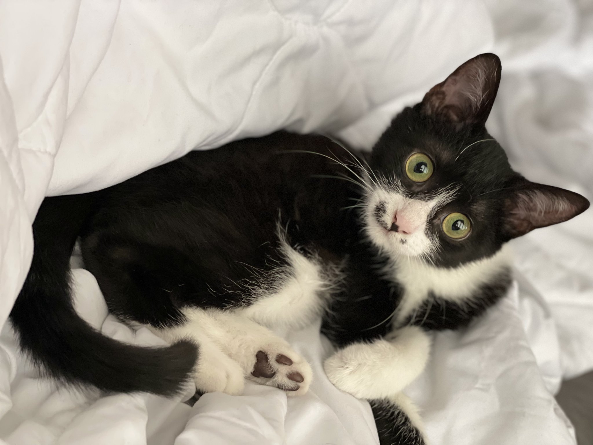 Чак сега успях да забележа нещо интересно за сладкото мъниче - то е с кръгли очички, много рядко срещано при котките. При предишните снимки се чудех защо изглежда по-различно.