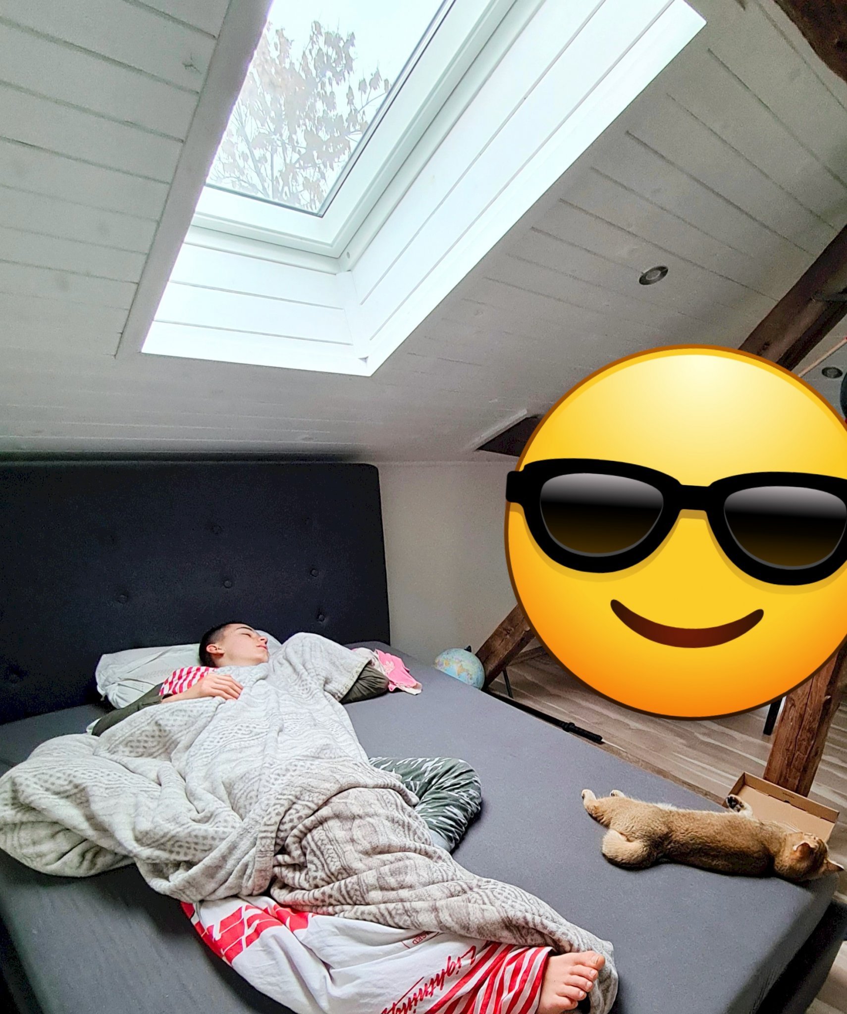 Габиди, веднага качвам. Извинете ме за вида на тийн стаята😔. Така спят моите момчета- цял ден се карат и хапят и вечер са така. Все една на мама малката гаргамушка знае, че с батко му са на един акъл 😁😁😁. Зе спи само при него, или на леглото, или в една кутия от маратонки до леглото 😁