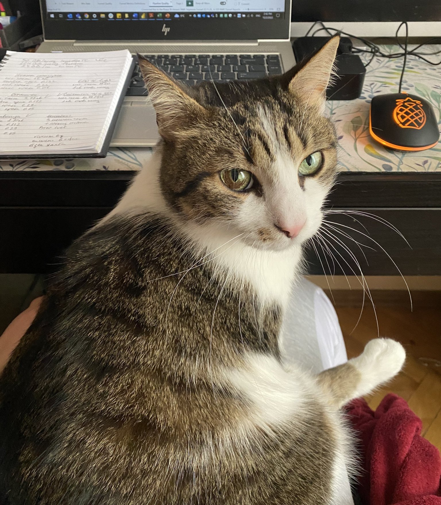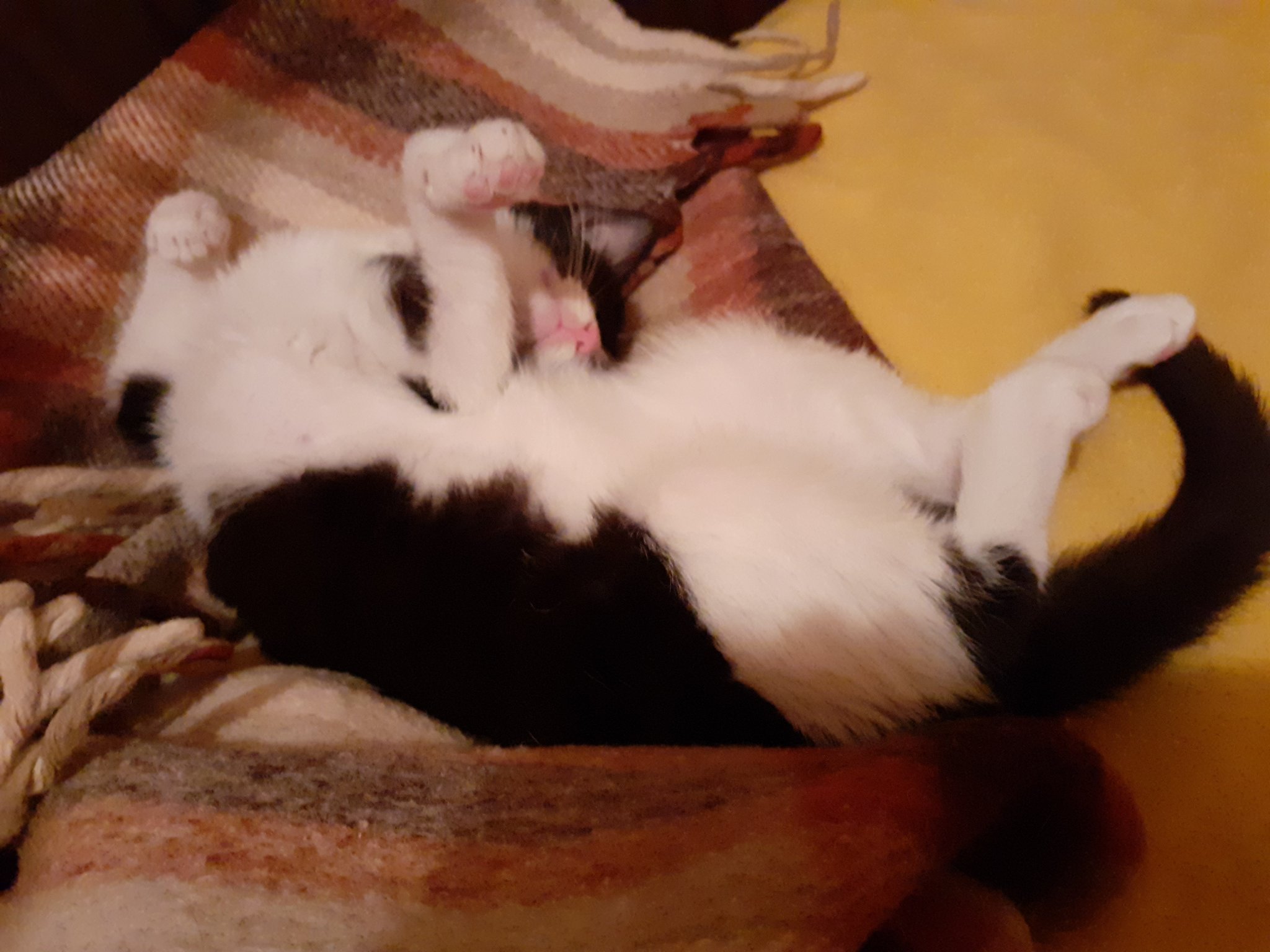 Но пък е изкарал добре ноща, коремчето е ужасно пълно, яде много, сега се закача с Шепа и почна и да се катери. Направо не мога да повярвам как толкова бързо сменя състоянията. От игриво коте, на посиняващо коте, което не може да си поеме въздух и ме шашка и сега отново игриво коте с леко по-тежко дишане вечерта.