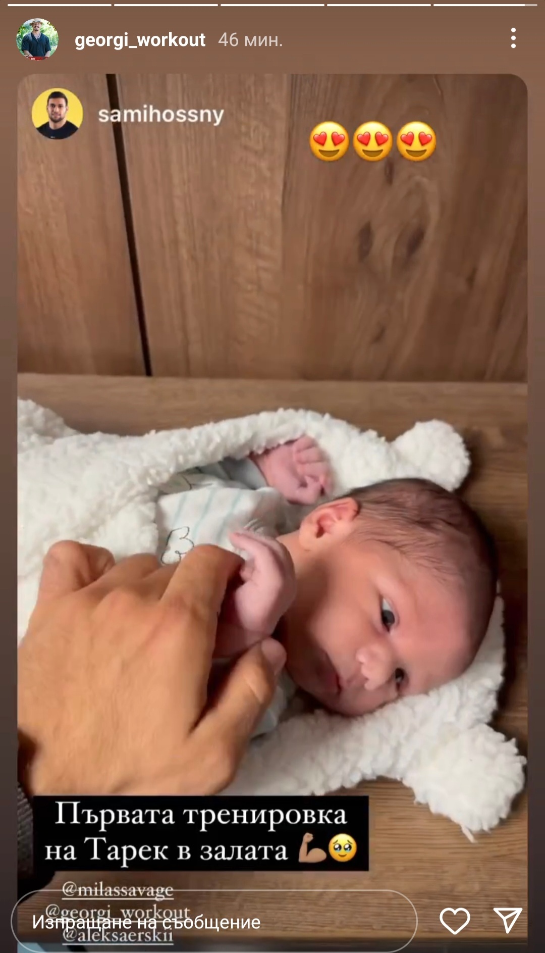Гого и Алекса днес са били в залата (снимали са тренировка) със Сами Хосни, Мила и новородения им син - Тарек, много е сладък, има клипчета в историите и на четиримата. Heartbeat