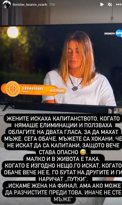 Съвета протече без изненади. Още когато предадоха отново властта в Жени всичко стана ясно. Гого отряза всички пътища към Мани да играят заедно. Филип и Лефтеров се чувстваха сигурни и не искаха да разбутват кошера и след отпадането на Мирела, Джаферович логично насочи ударите към Гого вместо към Мани, защото от нейна гледна точка сега така е най-добре. А защо останалите мъже не направиха нищо ми е много любопитно какво ще отговорят в подкастовете, които ги чакат след края на формата. Надявам се да са искрени обаче...