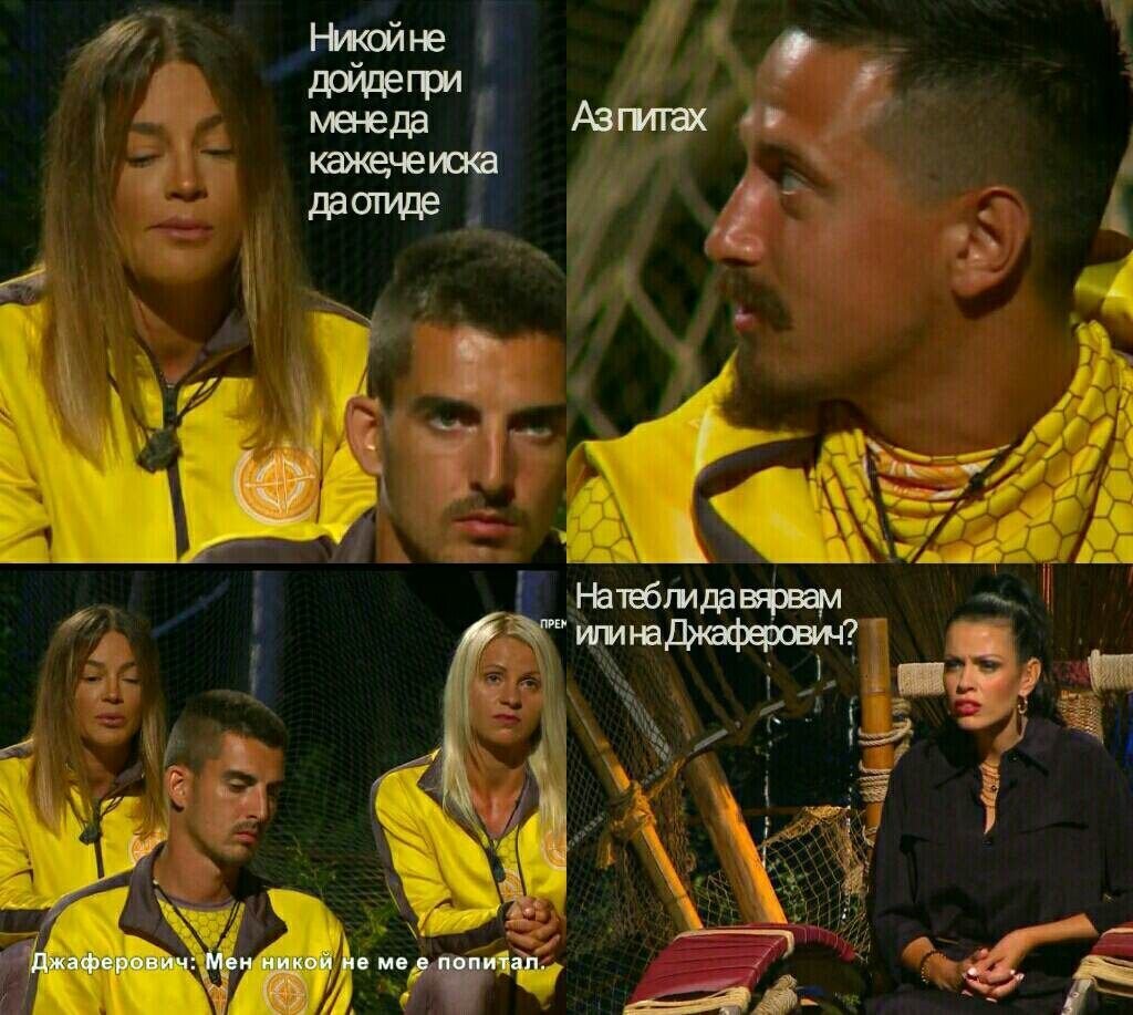 За мен Джаферович знаеше кой е капитан, знаеше, че са елиминации, знаеше за Алекса и хайде.. болна. А ако Джаферович бе останала капитан, то сигурно щяхме да гледаме само пъзели, които тя ще знае сигурно и предварително. Нямам вече никакво доверие на този формат, дъно.