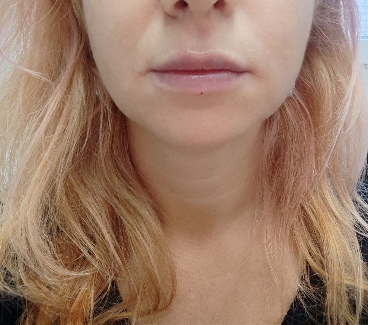 Прилагам снимки преди и след устните и състоянието на деколтето. Някакви идеи как да подходя към него?