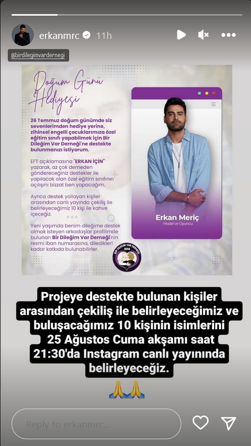 От стори на Еркан - с Юсуф Ерсин Басер - има канал в youtube, преди време направи предаване с Еркан на двора /когато каза, че с Хазал никога не са се карали/ и актьорът Волкан Уйгун /в момента участва в сериала "Семейство" и Еркан беше публикувал преди време тийзъра в стори, та се чудих кого подкрепя/