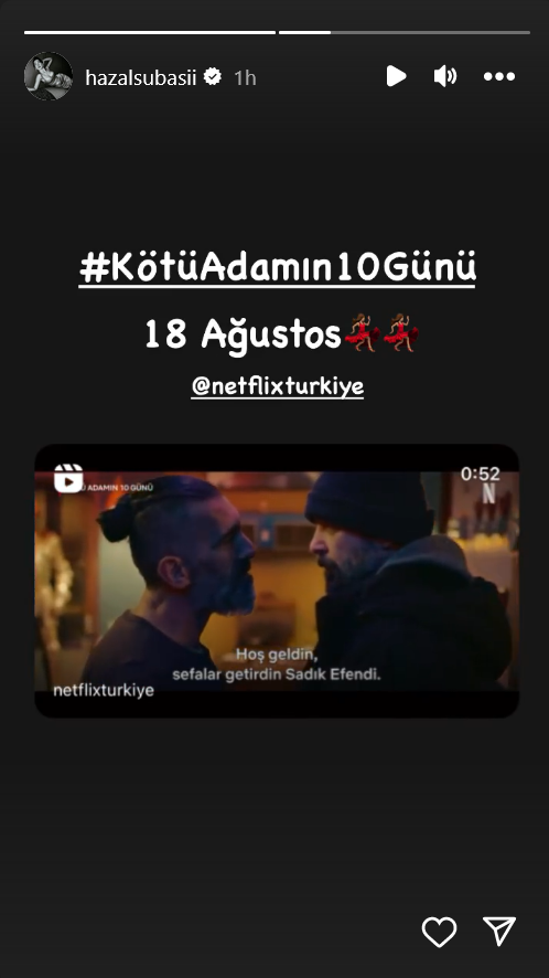 Вера, пропуснали сме новината, че Хазал участва във филма на Нетфликс "10 дни на лошия човек - Kötü Adamın 10 Günü".  Обявили са я на първи февруари, ние къде бяхме, че я проспахме Sunglasses