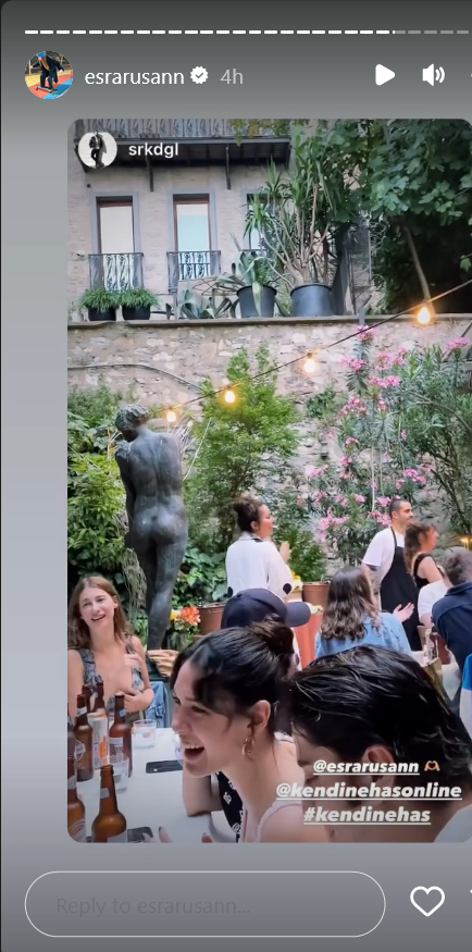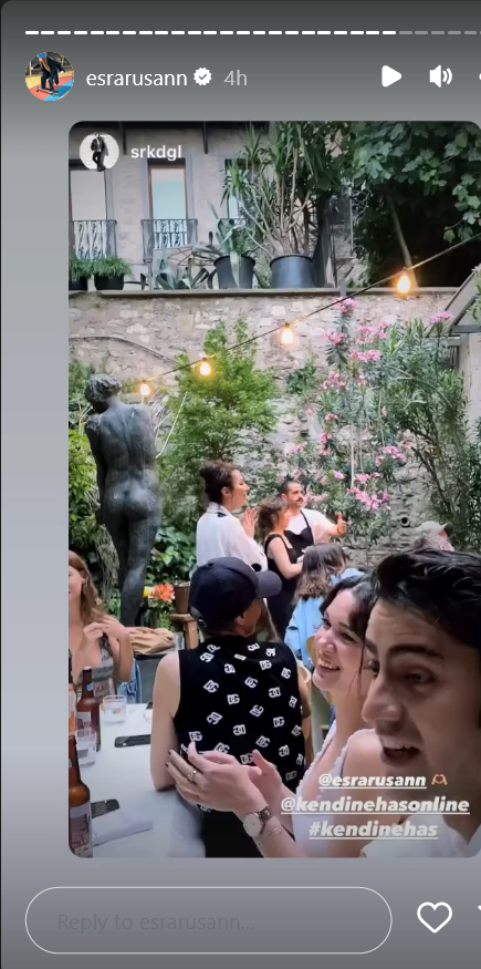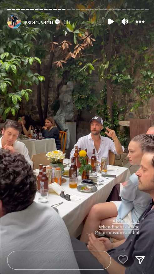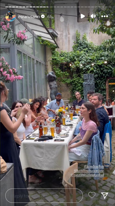 В неделя на общо мероприятие на марката Kendine Has и рожден ден на актьора Хаки Бичиджи /"Гореща глава", "Господарката на чифлика" и др./ - виждат се и други познати лица - Айбюке Пусат, Мелиса Шенолсун, Гизем Къзъл, Фатих Артман, Мерич Арал и съпругът ѝ, Енгин Йозтюрк, Туба Юнсал, Фърат Челик. Снимките и клипчетата са от приятелката на Берг - Есра Рушан.
