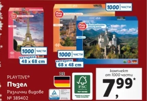 Идвам да ви споделя, че от понеделник (12 декември) в Лидъл ще има пъзели Playtive. Писала съм и преди, редила съм един и ми е от любимите. Матова повърхност, дебели парчета, хубаво изрязване, лесно се редеше.