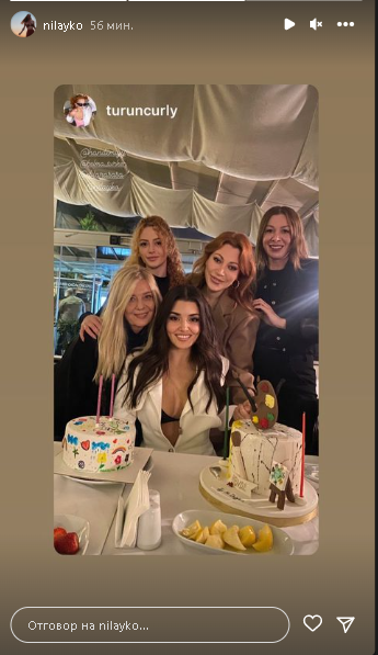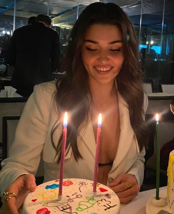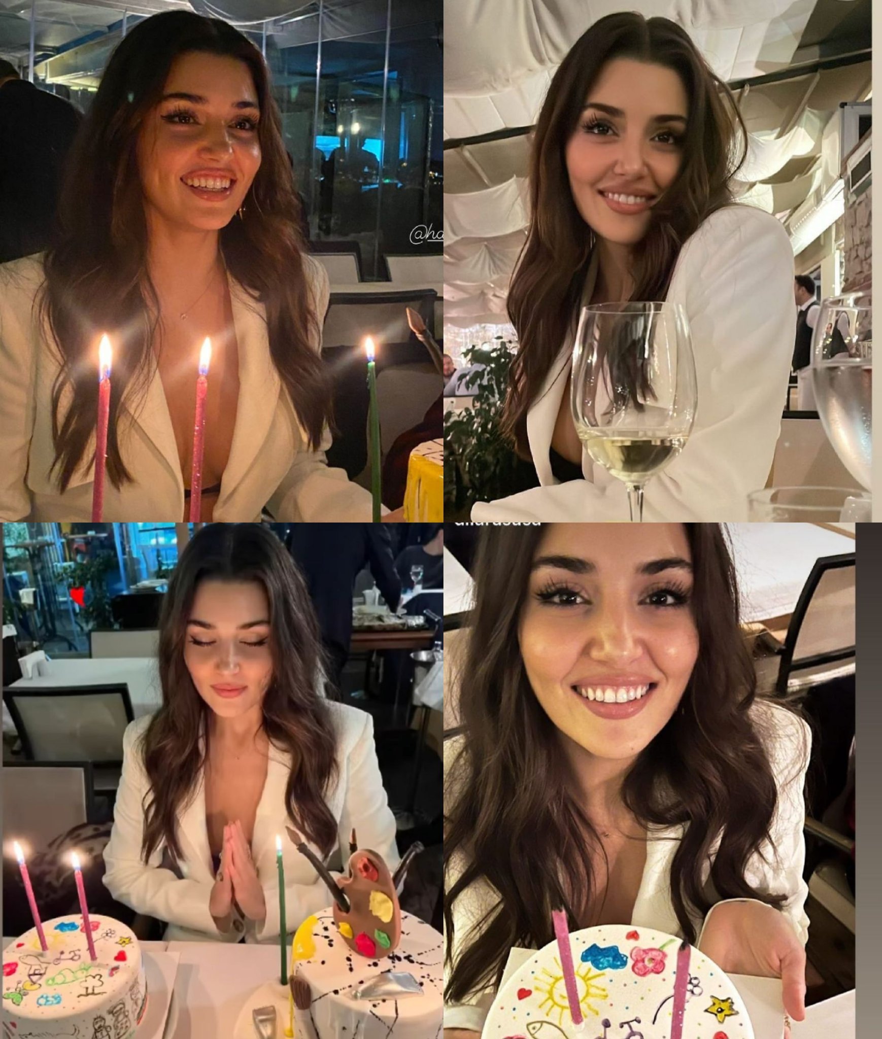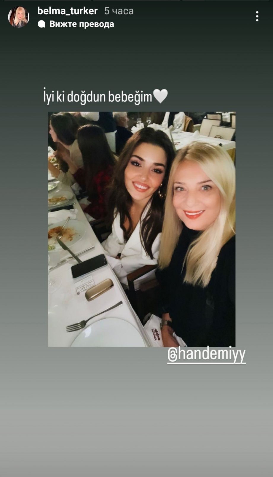 Само да уточня - тези снимки не са от тази вечер. Тя започна да отбелязва рожденият си ден от една седмица. Всяка вечер с различни приятели и близки. Преди два дни беше с Гамзе и Джанер. Ханде обикновено качва снимките, когато събитието е отминало.