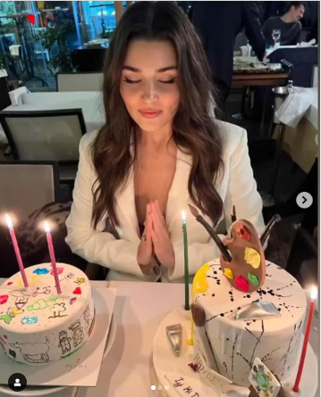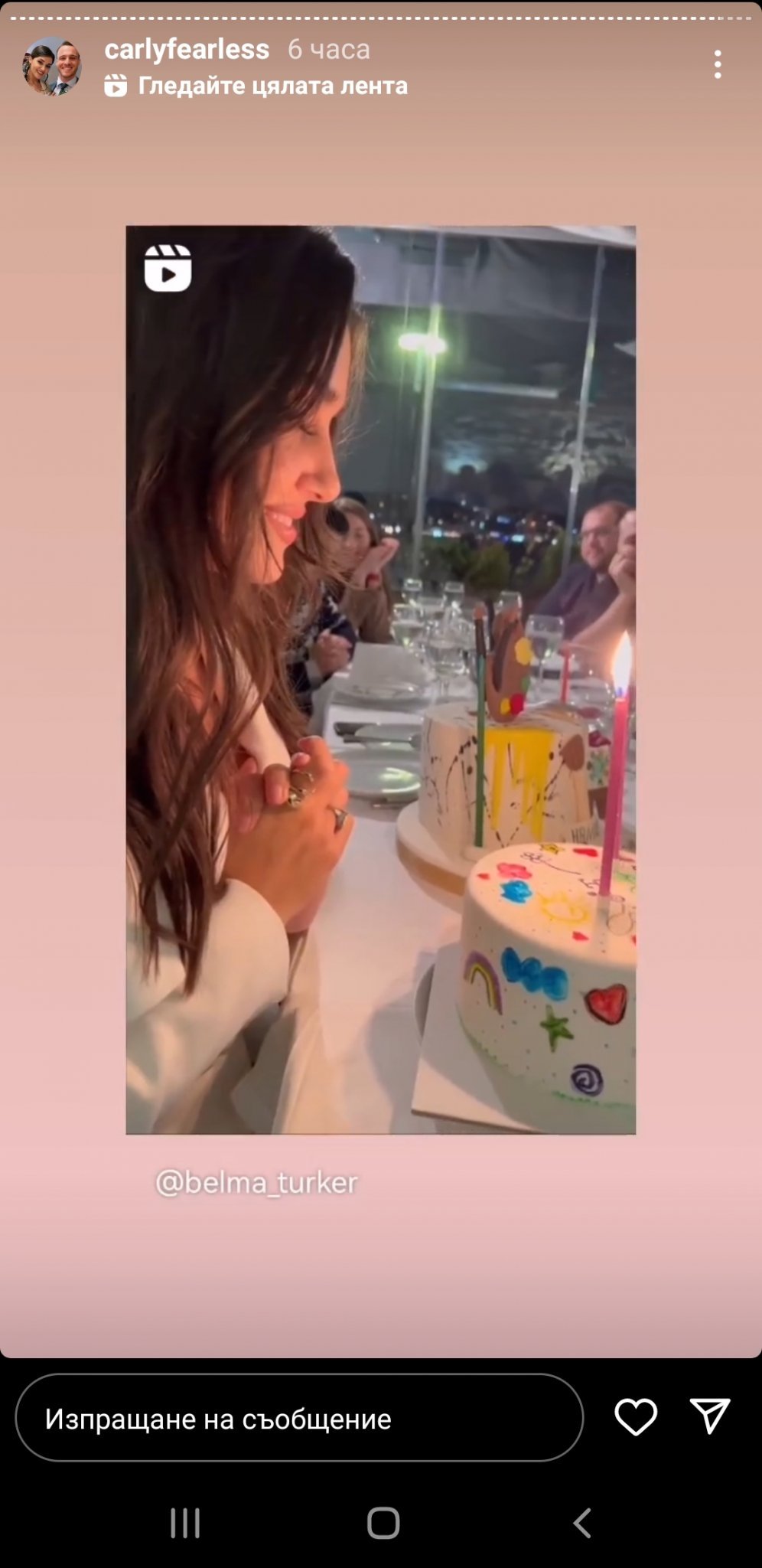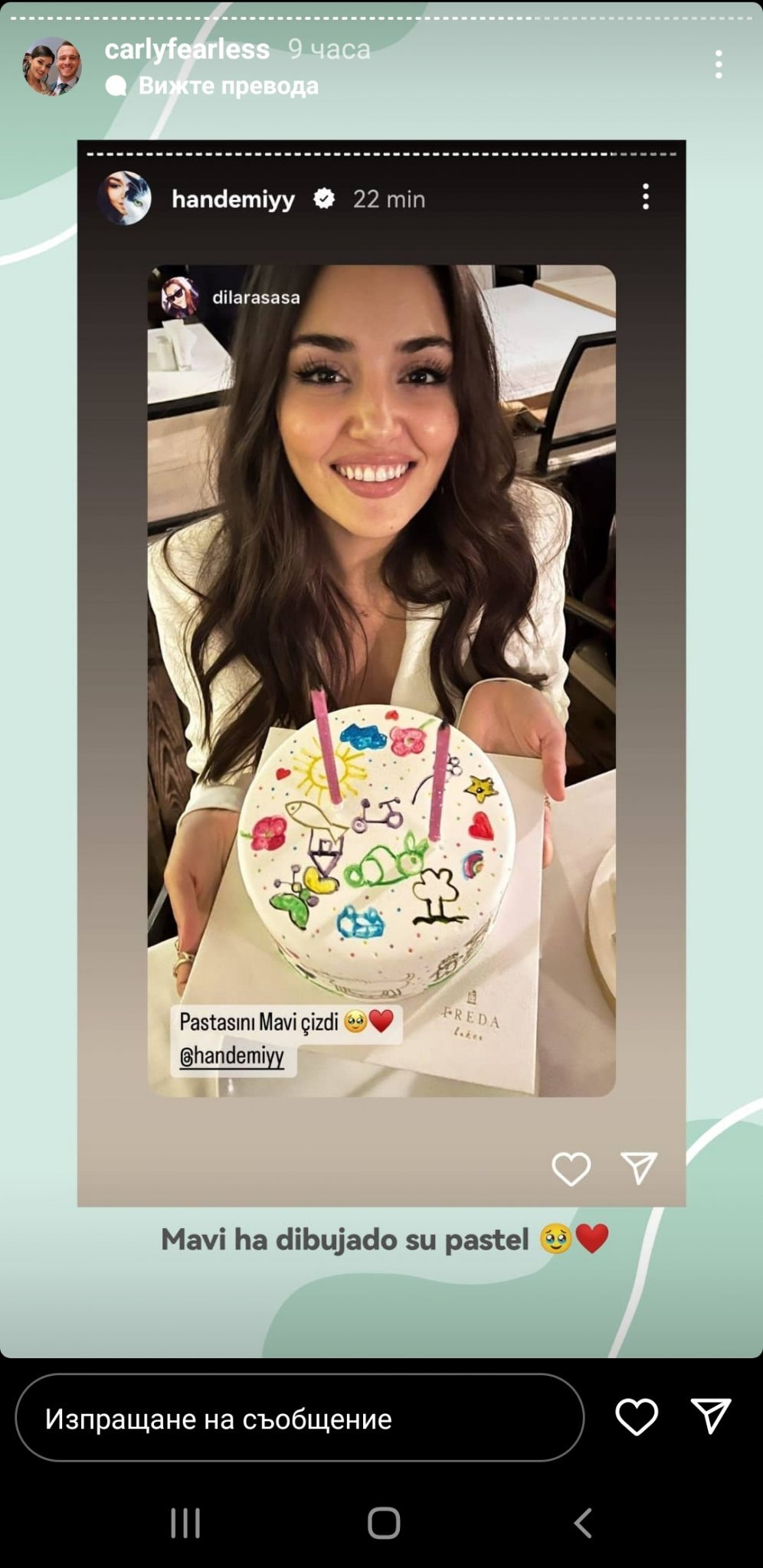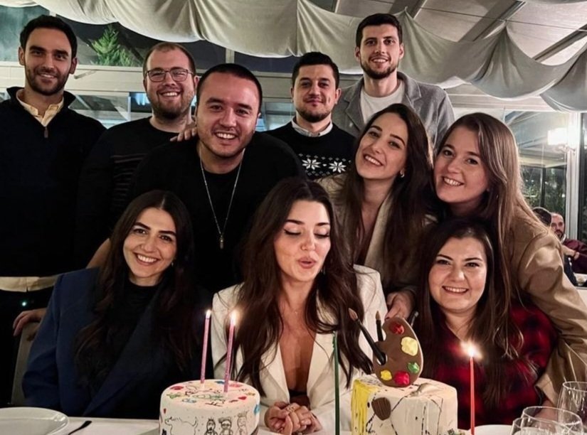 Само да уточня - тези снимки не са от тази вечер. Тя започна да отбелязва рожденият си ден от една седмица. Всяка вечер с различни приятели и близки. Преди два дни беше с Гамзе и Джанер. Ханде обикновено качва снимките, когато събитието е отминало.