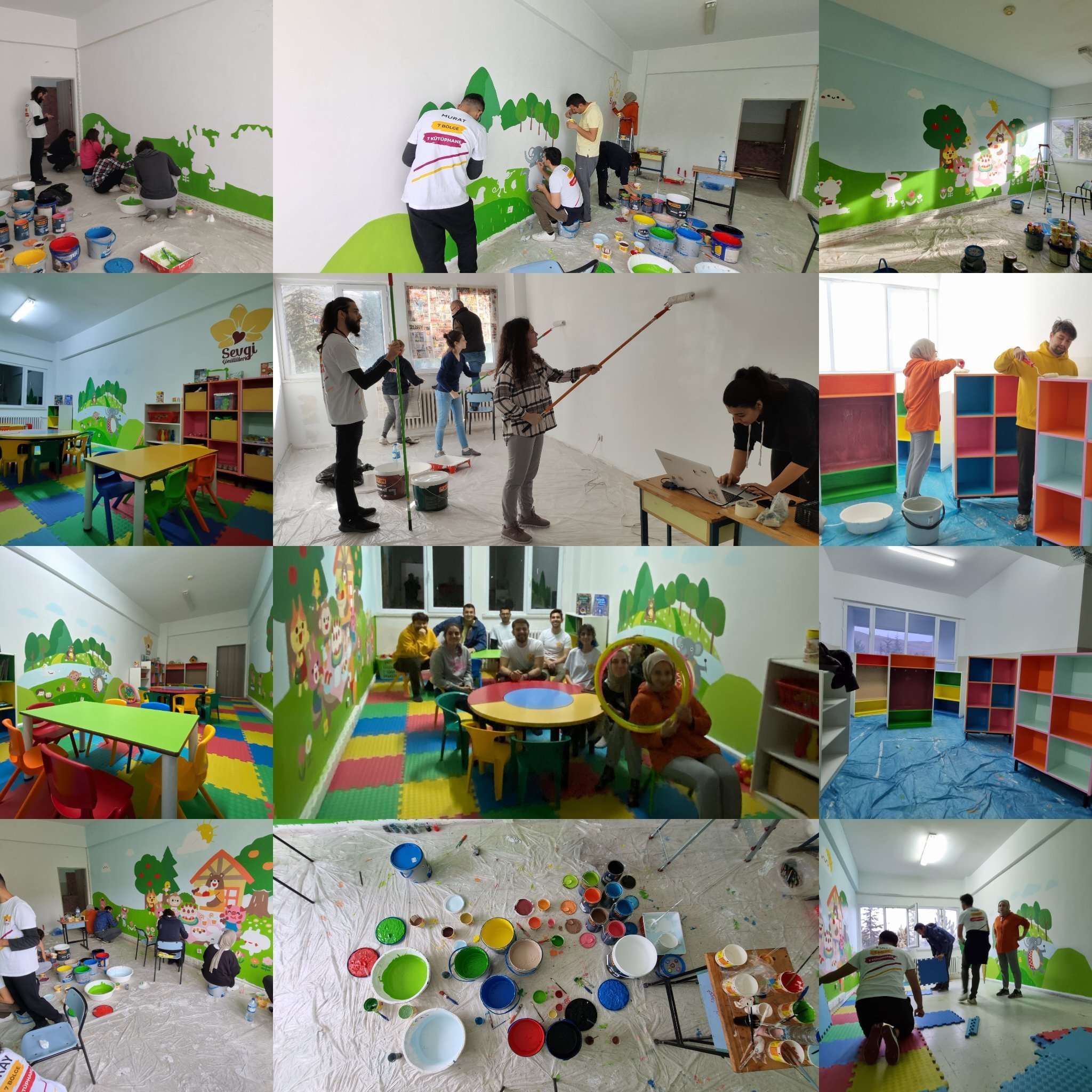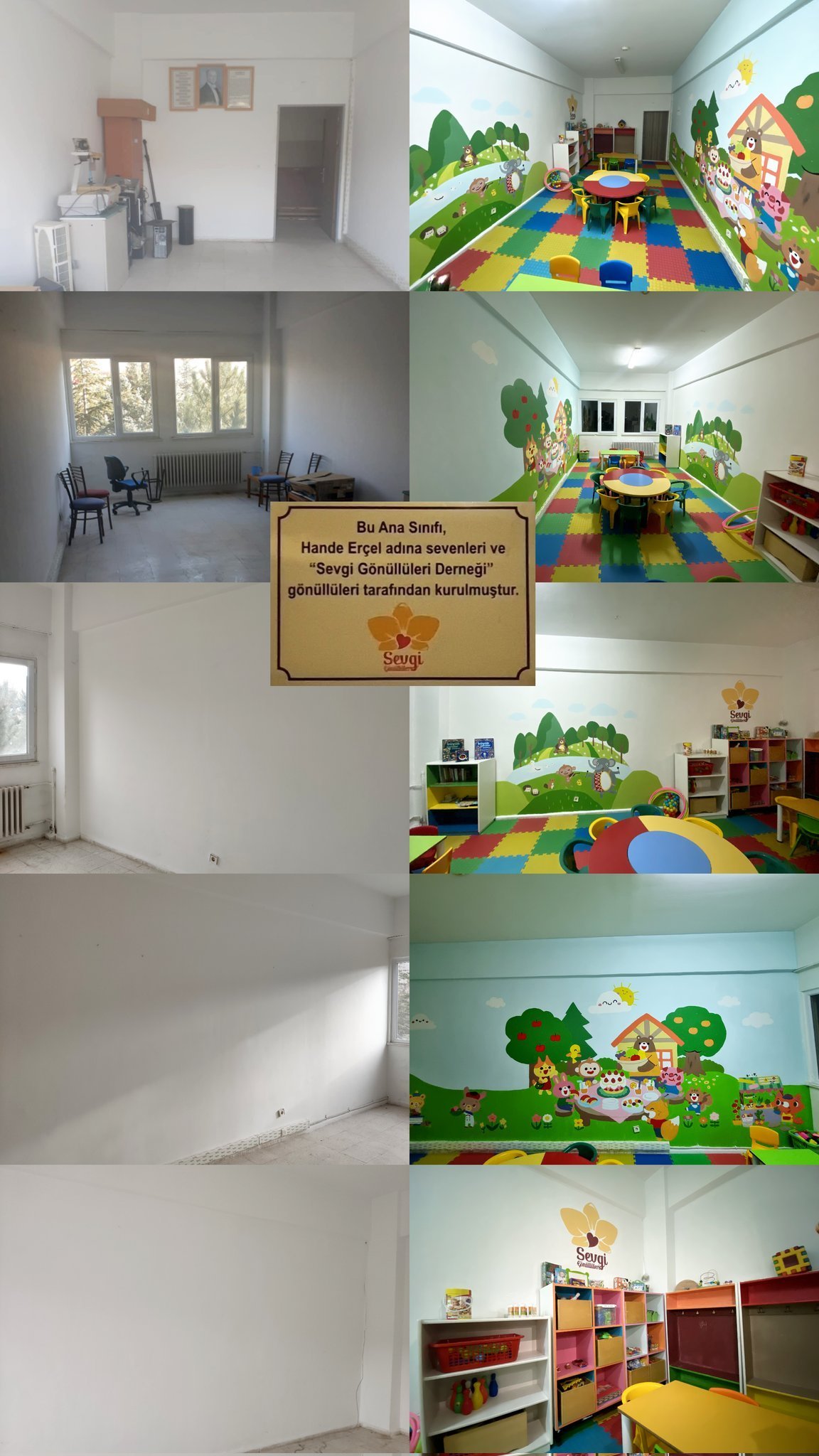 Основното ни дарение тази година беше да направим майсторски клас от името на #HandeErçel . Реализирахме тази мечта в селско училище в Полатлъ, Анкара, което има ученици и учители, но няма детска градина. Скоро учениците ще могат да продължат училище в новите си класни стаи. 🥰