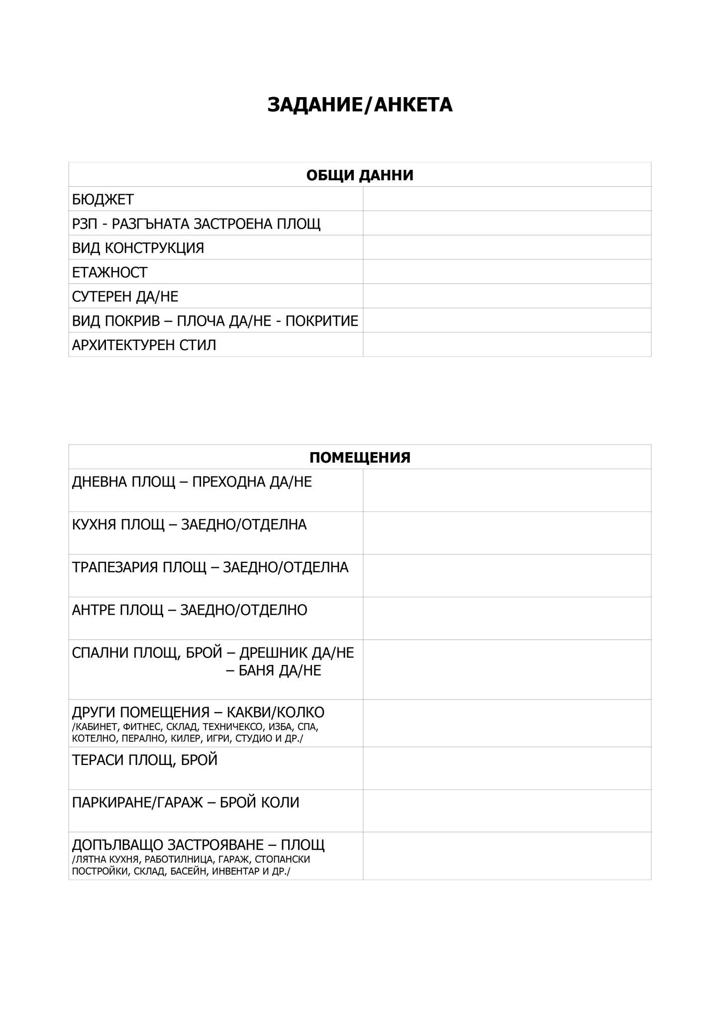 Нашият архитект за всички тези неща си говори с нас на живо. Но явно си е практика да се ползват такива въпросници, а щом се ползват, значи са полезни. Не съм знаела, извинете.