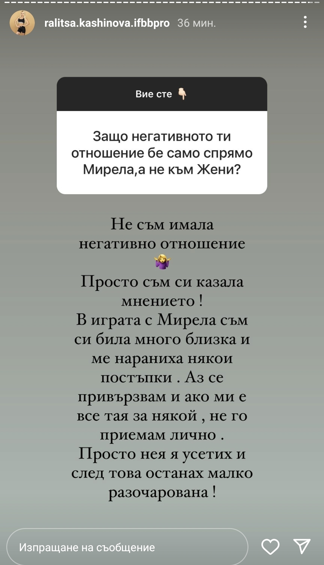Жени ми се струваше много силна жена и факта, че няма да участва в Надкаста не говори добре за нея. Трябва винаги да можеш да застанеш зад думите и действията си. Ако трябва да блокират коментарите под нейното видео ако това я притеснява.