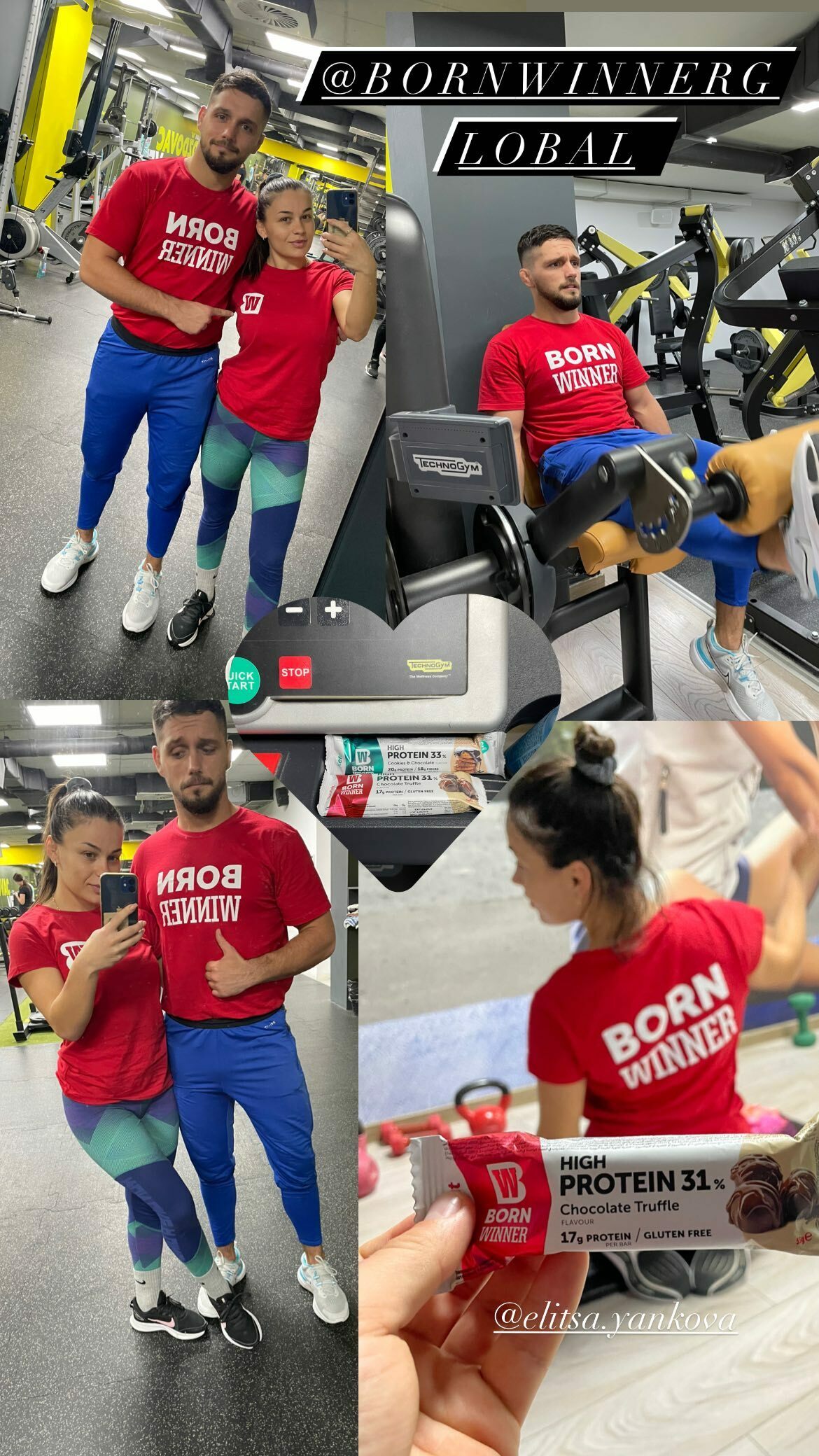 Наистина е реклама, но той си носи тениската на обратно с този надпис отпред, докато Елица я носи с надписа на гърба и "W" отпред. Smile