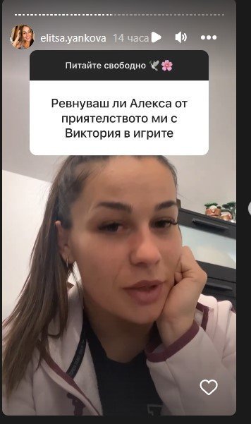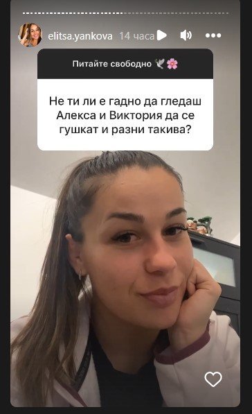 Елица отговаря на въпроси в Инстаграм. Междудругото добре говори и не обиди абсолютно никой. Каза, че харесва Мани. Елица отговори и на въпроси свързани с Виктория, по които се вижда, че не са и никак ОК тези отношения