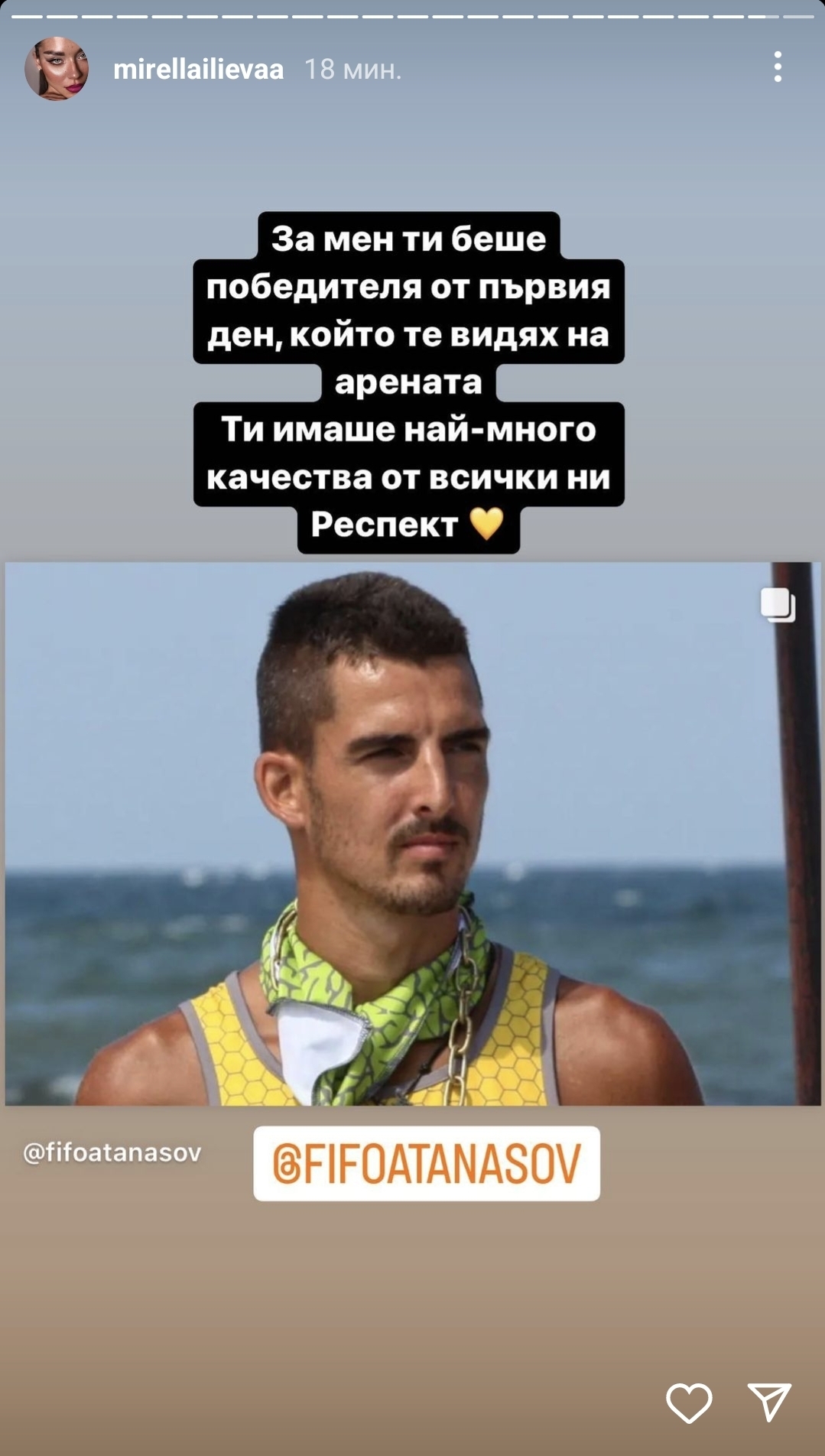 След отпадането изненадал Елица в хотела, където тя е била с Мира и с Виктория. Казал й Успях!