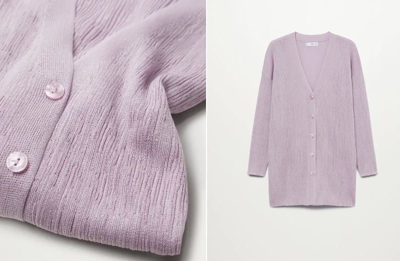 Жилетката е от тънка материя и с дължина до ханша..