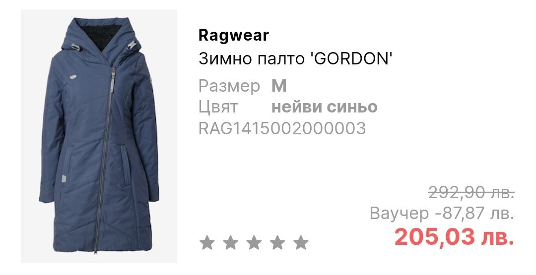 Аз имам 1 на Ragwear, много съм доволна, сега от намалението поръчах синьо платно на Mango 70% вълна, сигурно след НГ ще дойде.