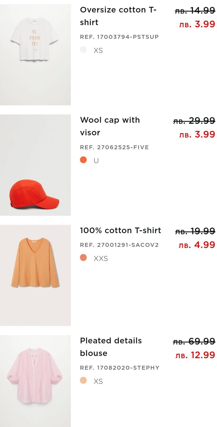 Връщането на артикули към основния сайт на Mango е безплатно, докато за аутлета има разходи. За да върнете артикул към основния сайт, можете да използвате куриерска компания или Български пощи; след като направите заявка, ще получите подробности за връщането. За връщане към аутлета трябва да изпратите артикула до Испания чрез Български пощи и това включва разходи.