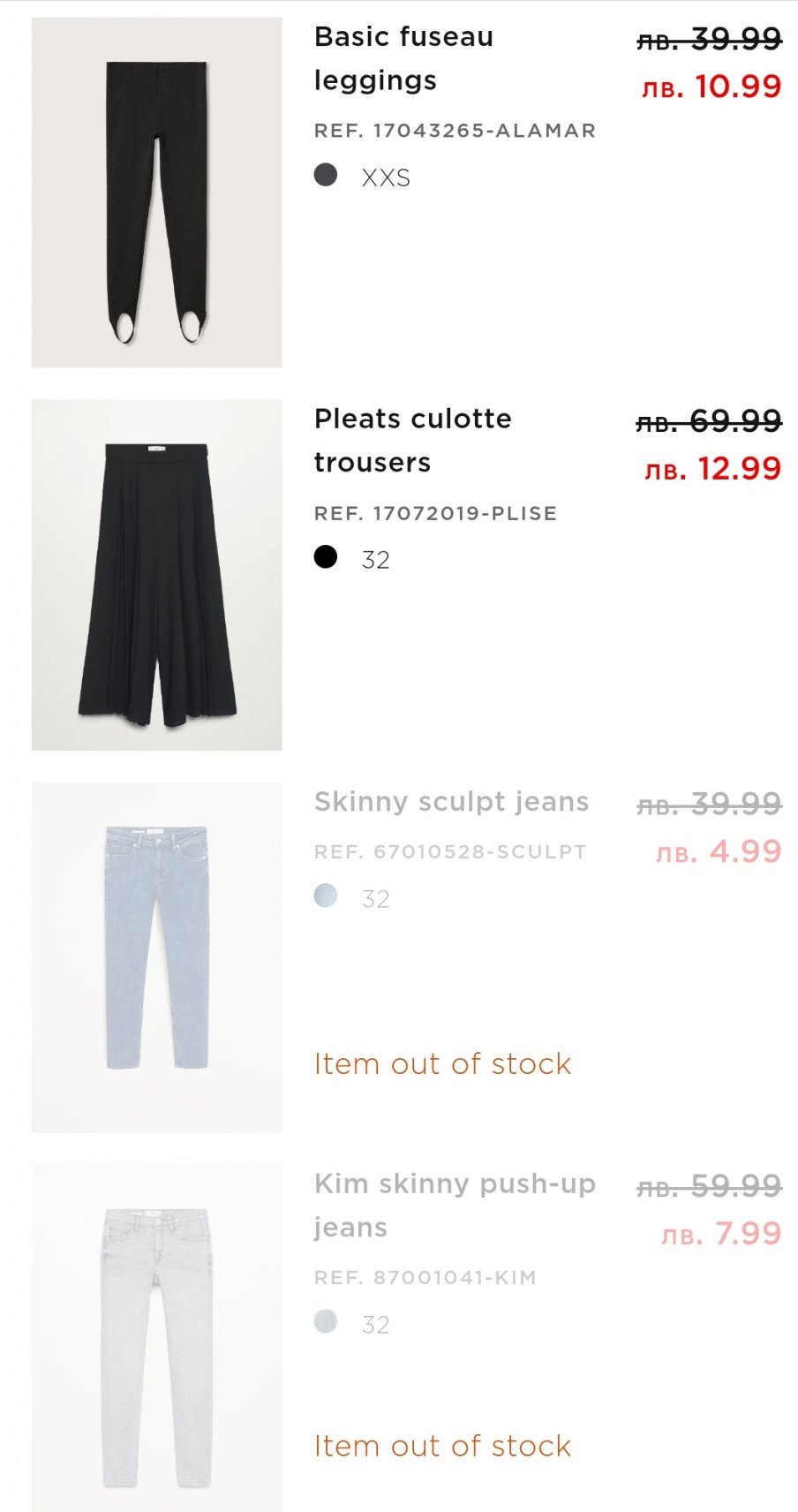 Не мога да се оправя с номерацията на панталони в Манго. 34 са ми големи, 32 малки. Явно всеки модел си е със собствено мнение за номерацията. Никакъв синхрон.