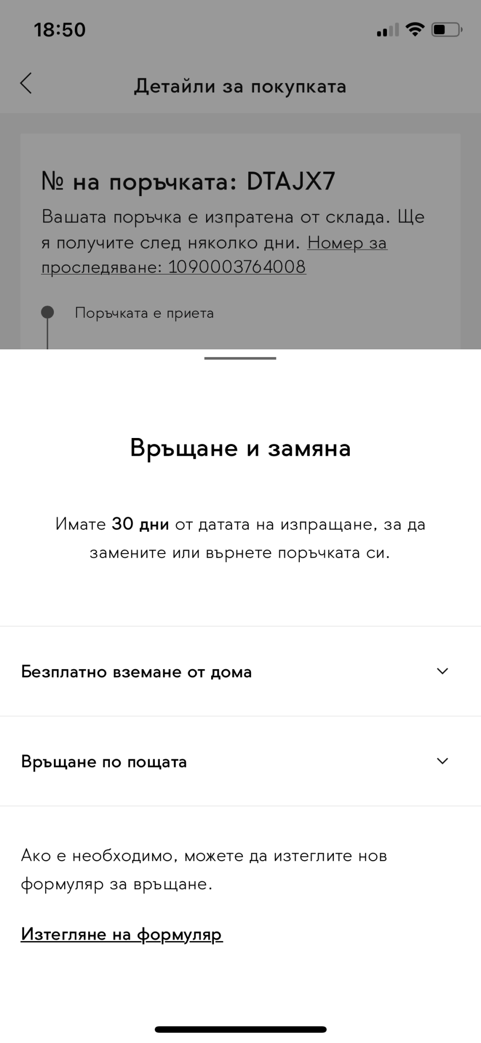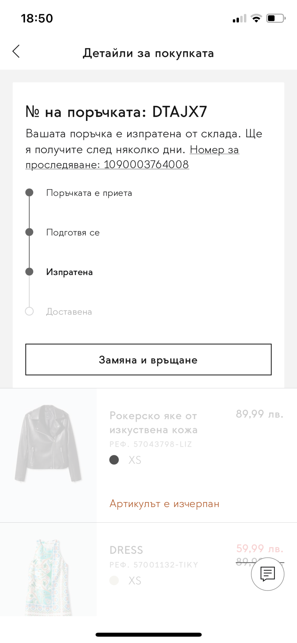 Връщането на артикули към основния сайт на Mango е безплатно, докато за аутлета има разходи. За да върнете артикул към основния сайт, можете да използвате куриерска компания или Български пощи; след като направите заявка, ще получите подробности за връщането. За връщане към аутлета трябва да изпратите артикула до Испания чрез Български пощи и това включва разходи.