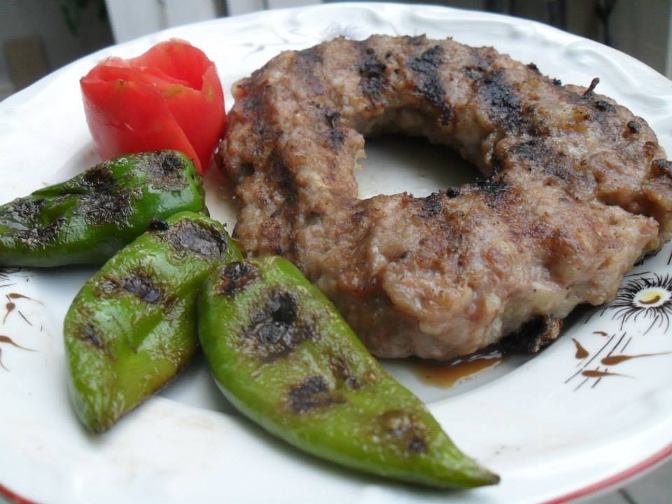 Начин на приготвяне: Продуктите се нарязват на ситно и се омесват много добре с каймата. Оставя се да отлежи поне 2 часа. Оформят се 4 големи кюфтета с дебелина около един пръст. В средата правим малка дупка за да заприличат нашите кюфтенца на гевречета. По желание се намазват с олио и се пекат на средно силна скара 4-5 минути от едната страна, и още 3-4 минути от другата.