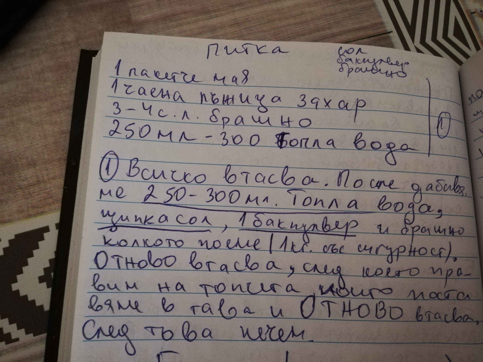 Тази рецепта е много сполучлива и винаги я правя за Нова Година. Когато питката е малко поизстинала/топличка/, като си откъсна парче от нея,намазвам с масло Президент и си поръсва от шарена та сол. Рецептата я имам на снимка, за това така я качвам.