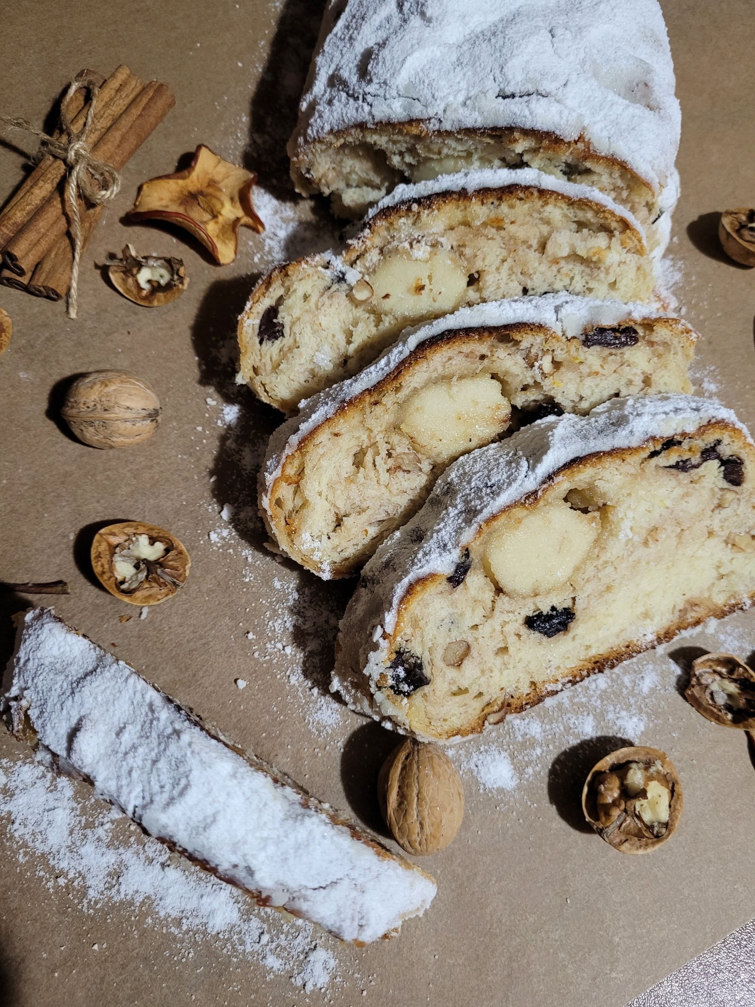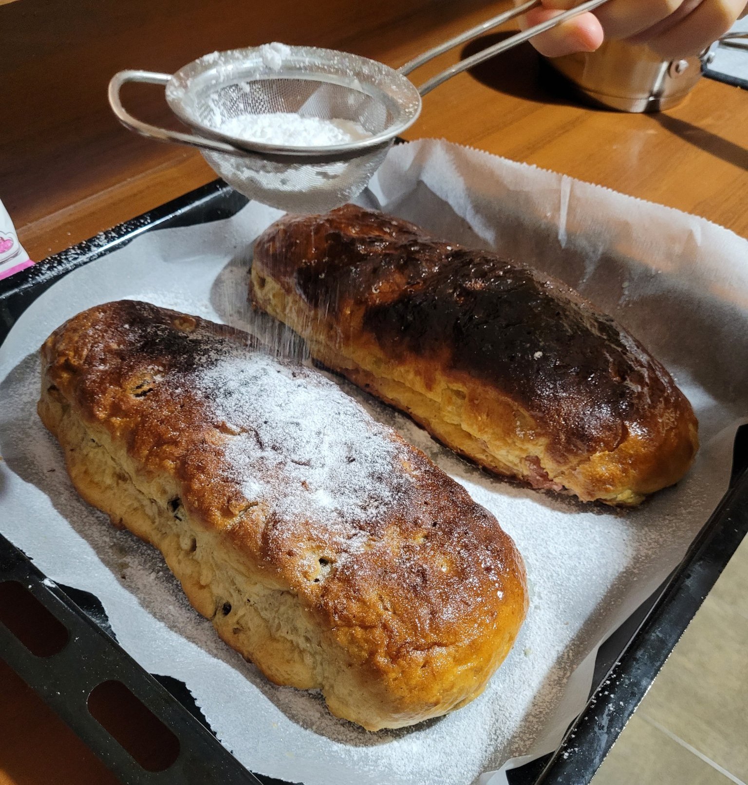 9. Изпечените щолени надупчваме с клечка за зъби, намазваме с разтопеното масло за по-дълга трайност и поръсваме обилно с пудра захар.