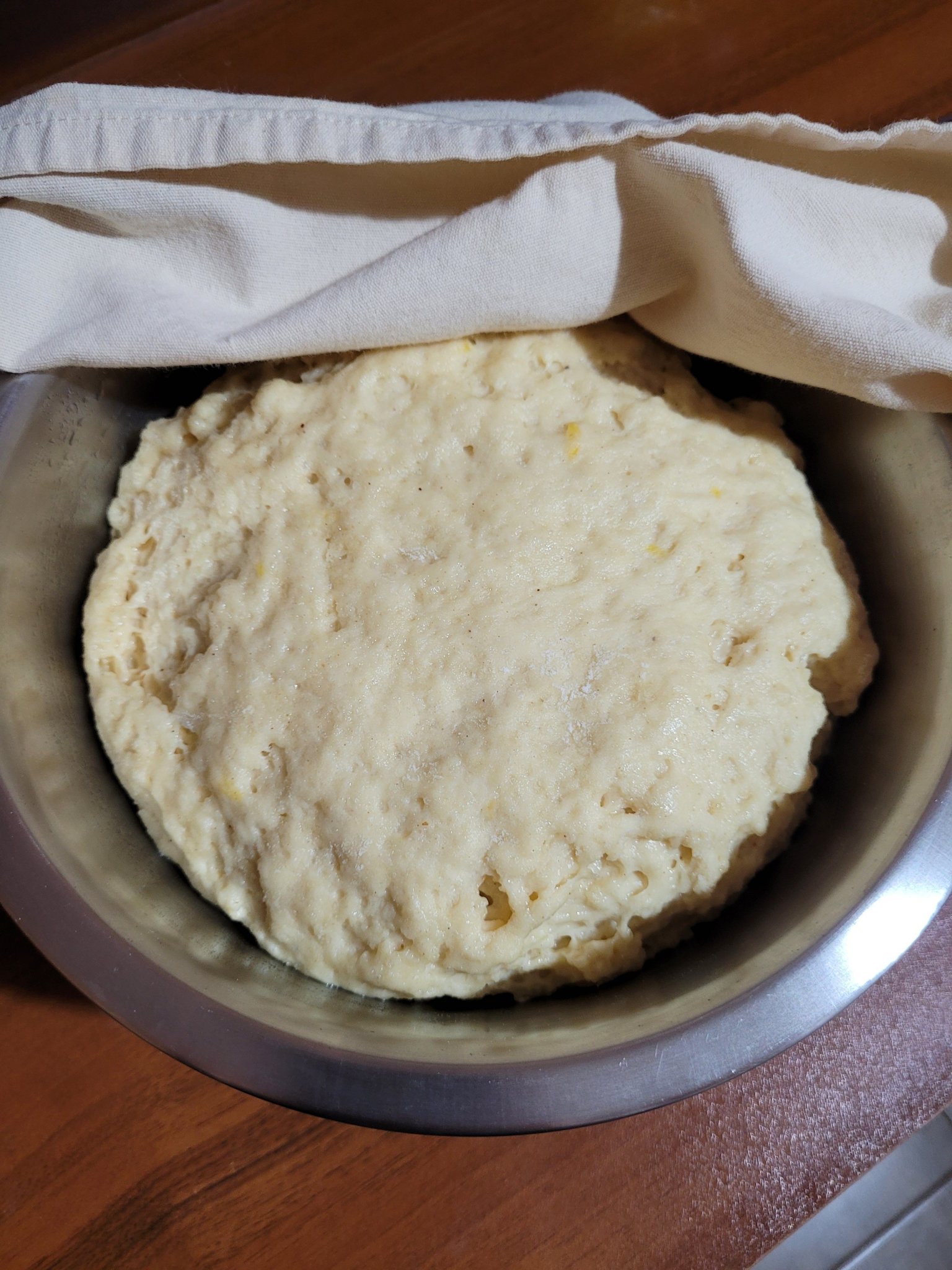 4. Замесва се меко тесто. Поставяме в намазнена купа и оставеме за 1 час да втаса на топло.