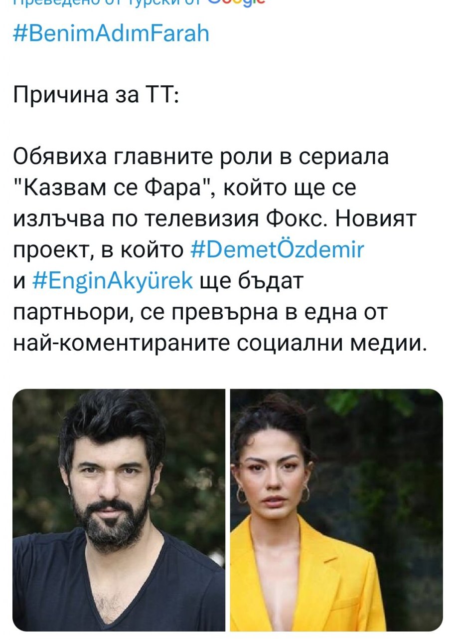Демет Йоздемир, който получи предложение за сериала "Казвам се Фара", който ще се излъчва по Fox TV, прие това предложение. Успешната актриса ще играе главната роля с Енгин Акюрек.