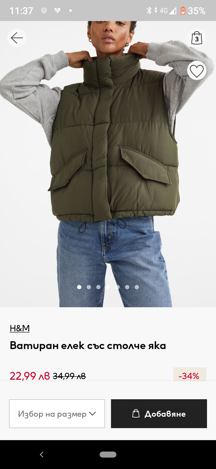 Не ми харесва въобще, голяма торба. Къде съм гледала, но ръкавната извивка е почти до талията. Дори и със суичър или дебела блуза стои отворено на ръкавната - като балон съм. А исках нещо такова с по дебел пуловер отдолу да разхождам навън куч, ама ще си ходи наобратно.