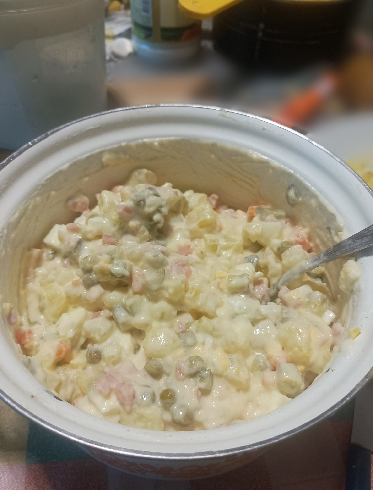 Снощи истинска руска салата "сготвих", страхотна, нищо общо с купените (бях си обещала да не купувам готовите бъркочи 🤢 и съм ѝ забравила вкуса)